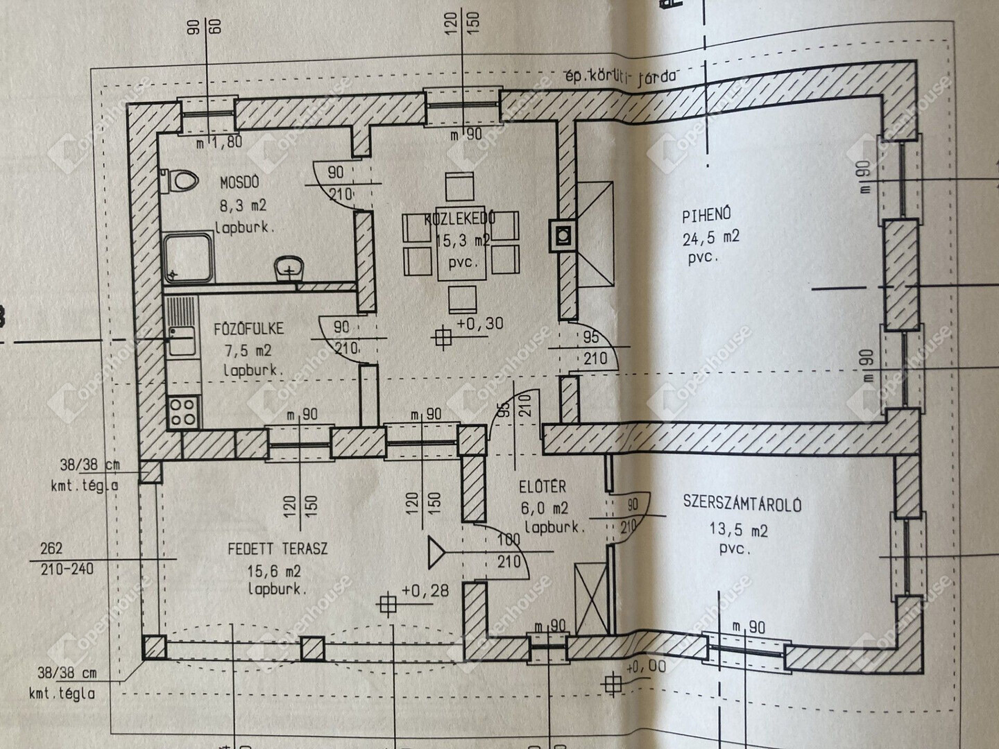 Masszív 60 cm-es vályog- és blokktégla falazat, új tetőszerkezet és cserép