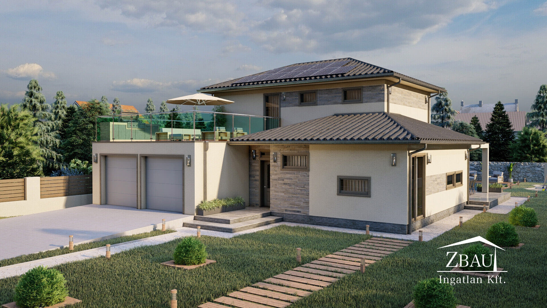Irodánk megvételre kínál új építésű, könnyűszerkezetes, 5 hálószobás, két szintes, 139 négyzetméteres, dupla garázzsal rendelkező lakóházat Gencsapátiban, a jelenleg is építés alatt álló Daniella lakóparkban.