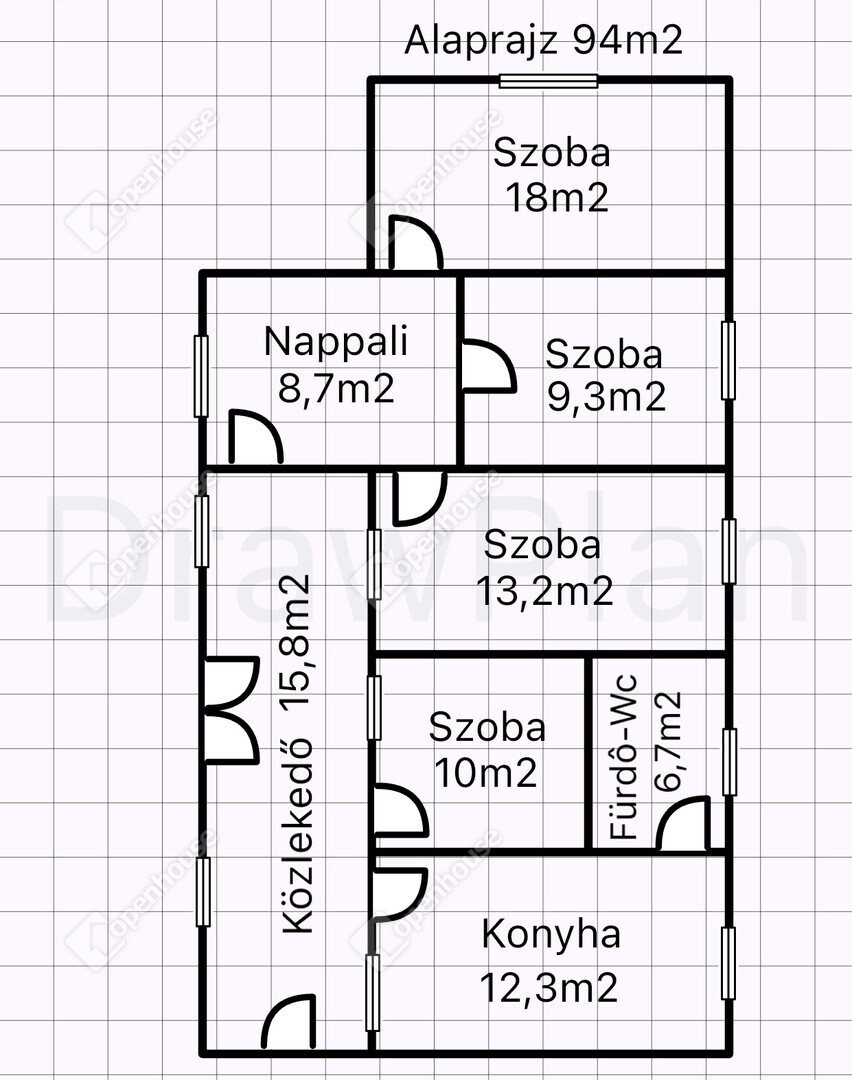 -Helyiségek 94m2 alapterületen: négy szoba, nappali, konyha,fürdő-wc,közlekedő.