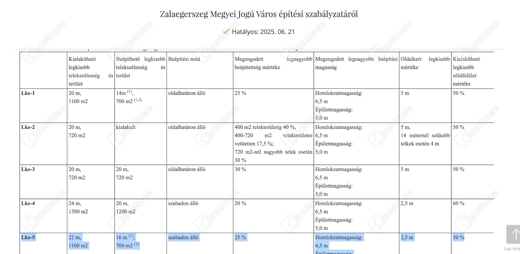 Övezeti besorolás: Lke-5 (kertvárosias lakóövezet)