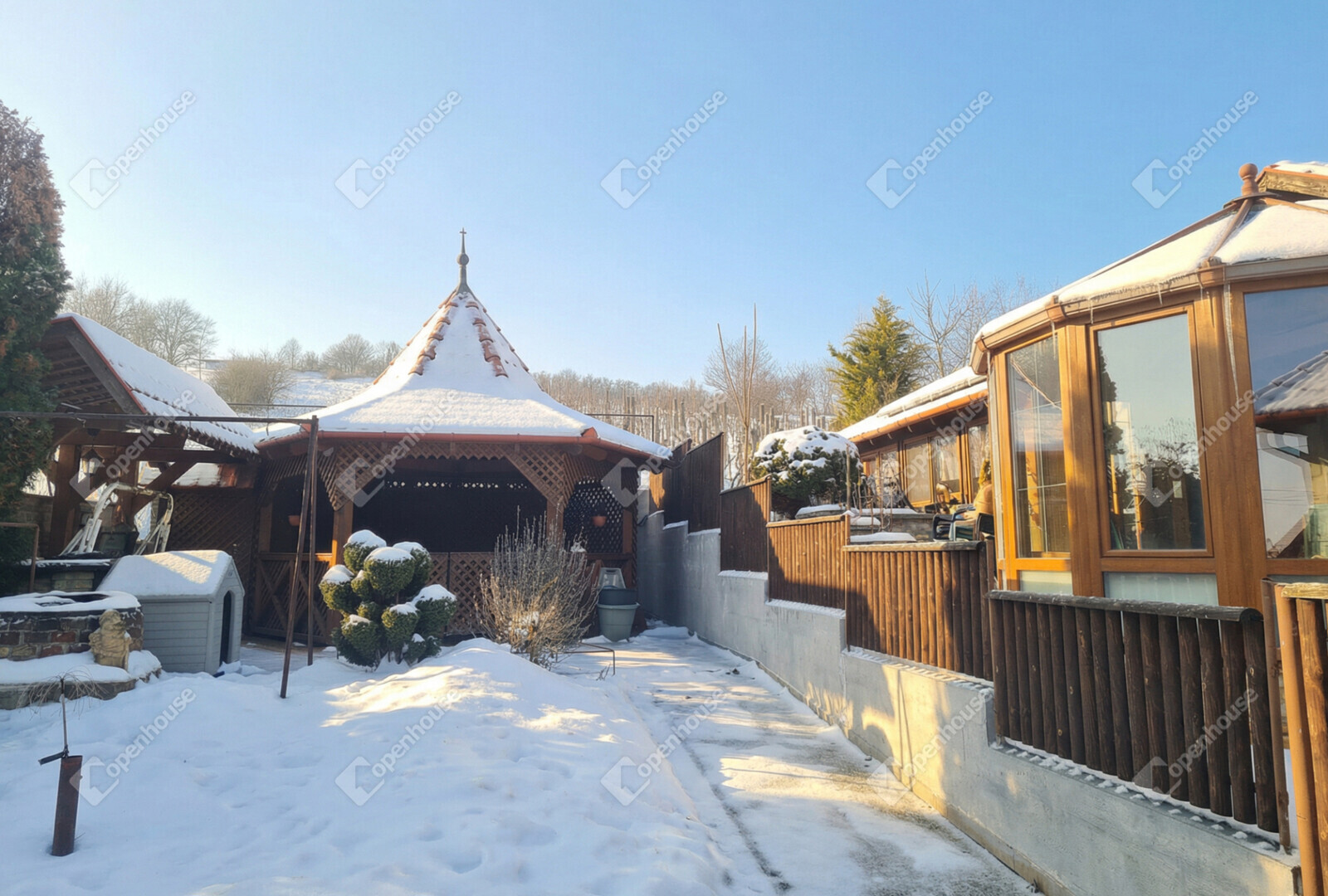 a felső részen szőlőültetvény és egy 28 m²-es pince