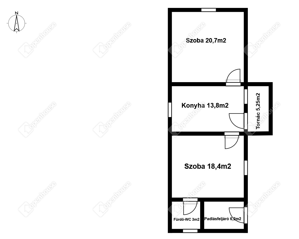 - 2 tágas szoba, konyha és fürdőszoba-WC, tornác