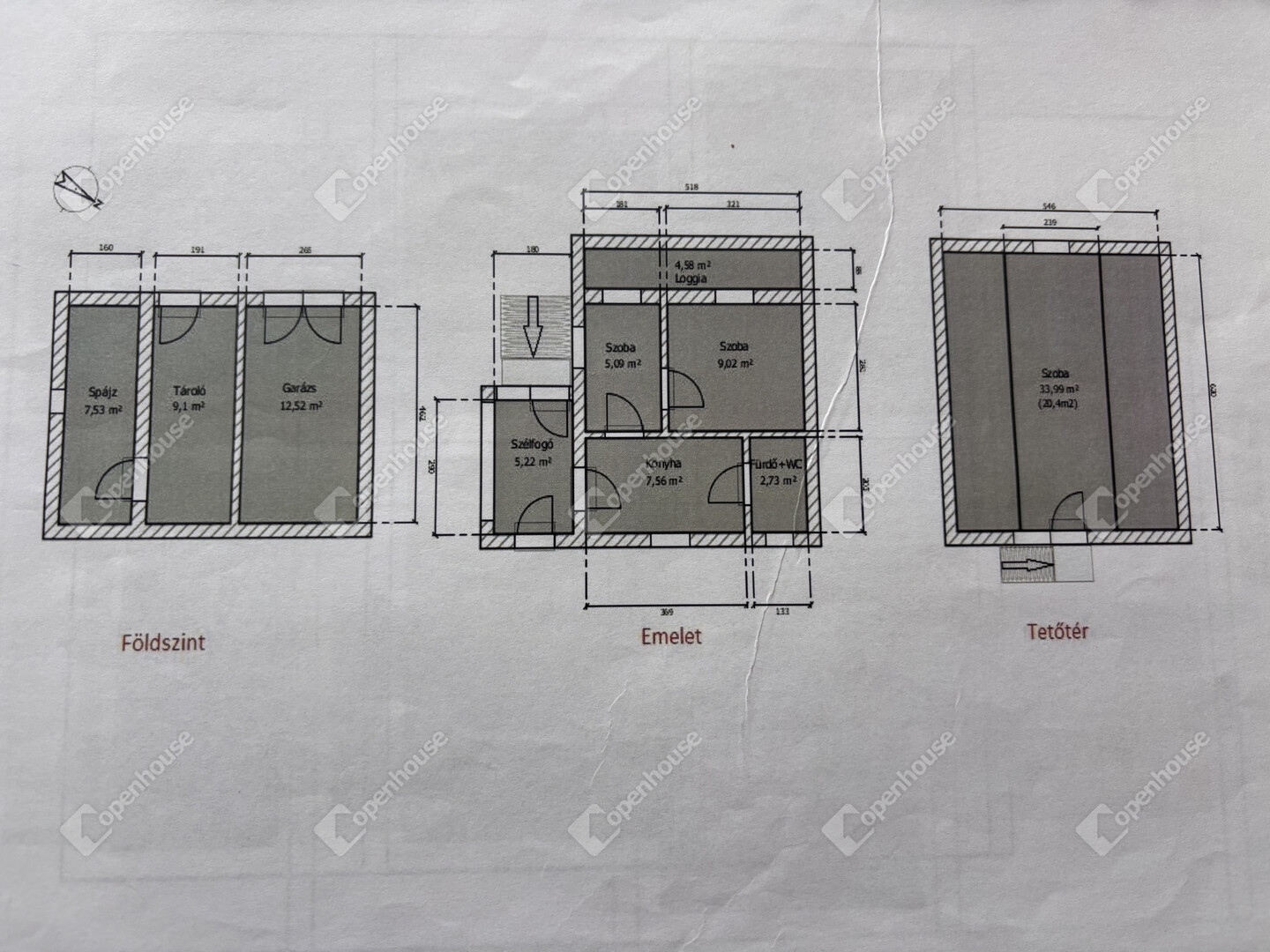 - 3 szoba, konyha, fürdőszoba, tároló, garázs (szerelőaknával), pince