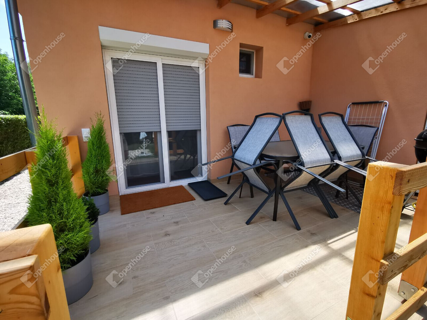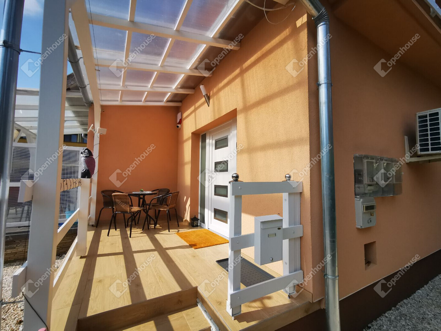 - a nappali előtt a déli oldalon egy kellemes hangulatú 8 m2-es fedett terasz fogad