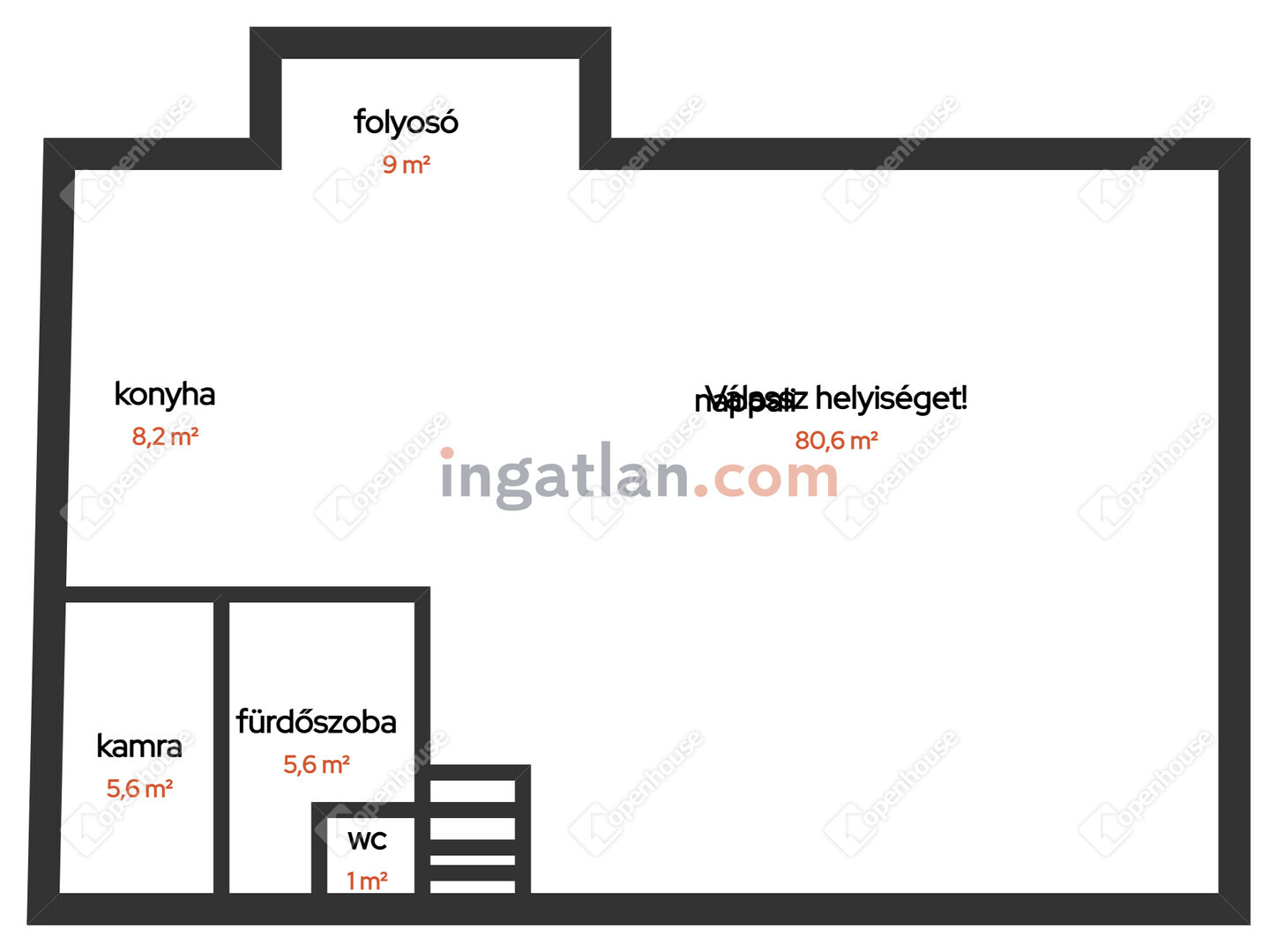| Szoba | 20.00 m2 | Padlószőnyeg |