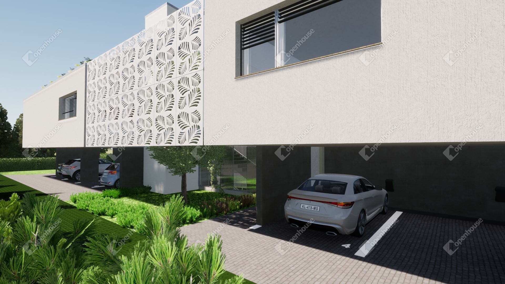 A lakásokhoz tartoznak fedett gépkocsi beállók (elektromos autó töltő kiépítéssel).