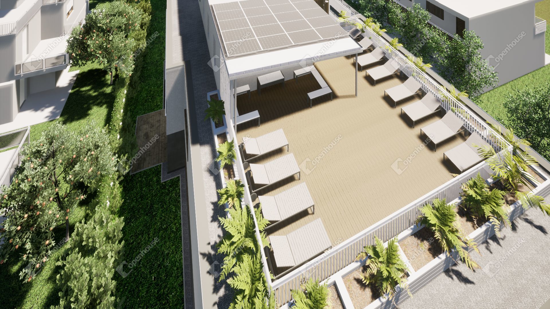 Az ár tartalmazza a privát fedett autó beállót, a napozórészt a tető szinten és a privát tárolót (3.24 m2).