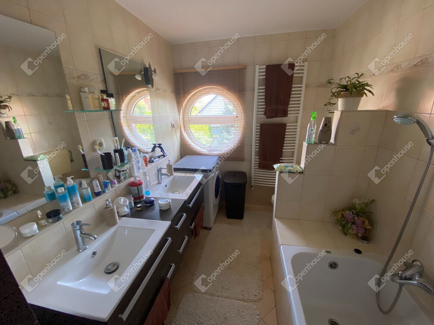 Az emeleten találhatók a hálóhelyiségek. Három szoba, egy előszoba és egy gyönyörű fürdőszoba, zuhanyzóval és egy kényelmes méretű nagyon dizájnos fürdőkáddal! A fürdőszobában is található egy WC.