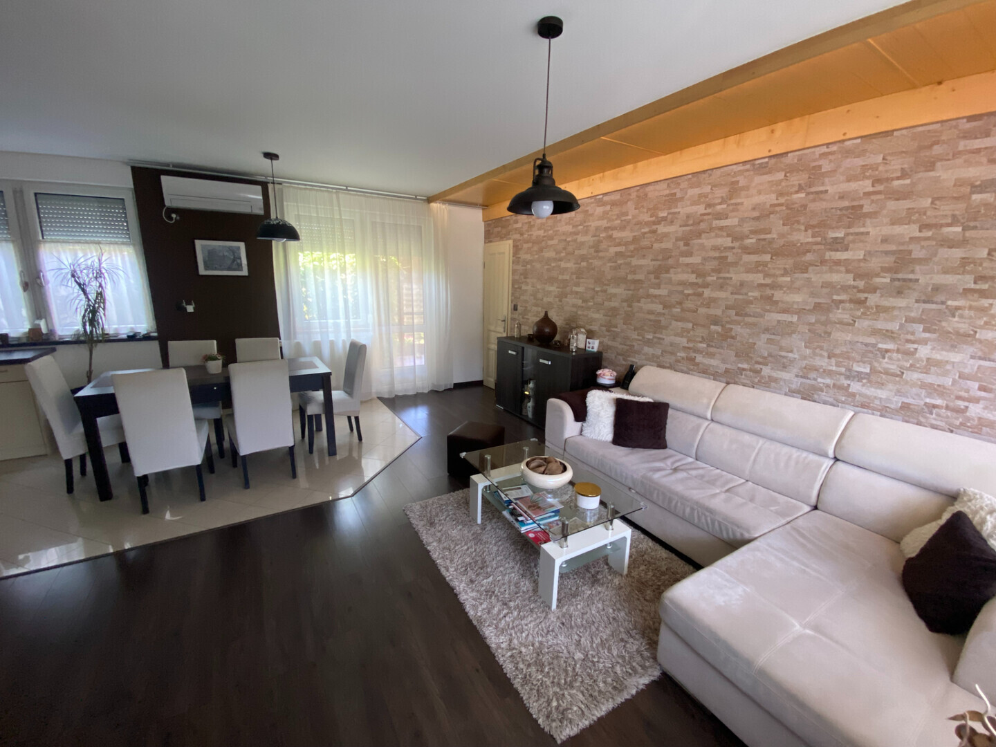 Mosonmagyaróvár kertes, családi házas részén, a Halászi úti lakótelepen, a Mosoni Dunától 5 perces sétára fekvő, közvetlen kertkapcsolatos, nívós, modern stílusú, kétszintes, rendkívül jó elosztású, 81,4 m² alapterületű 3 szobás plusz nappalis sorházi lakás terasszal, garázzsal és10 m²-es kis kerttel eladó!