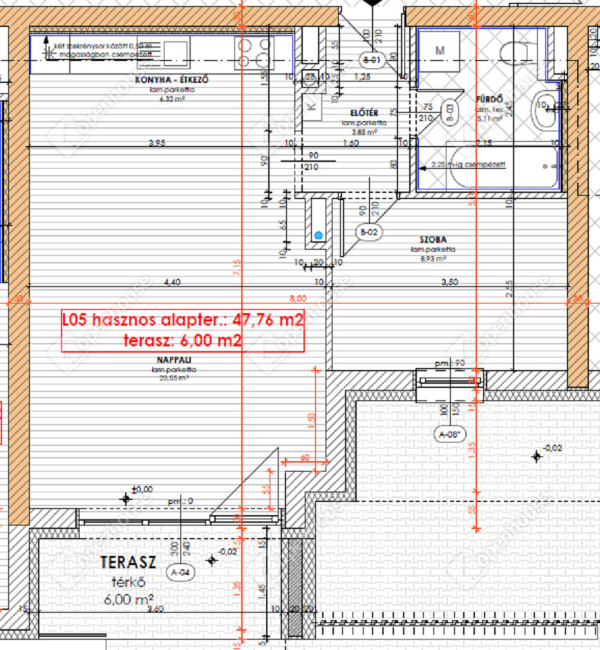 | Amerikai konyha | 6.32 m2 | Laminált padló |