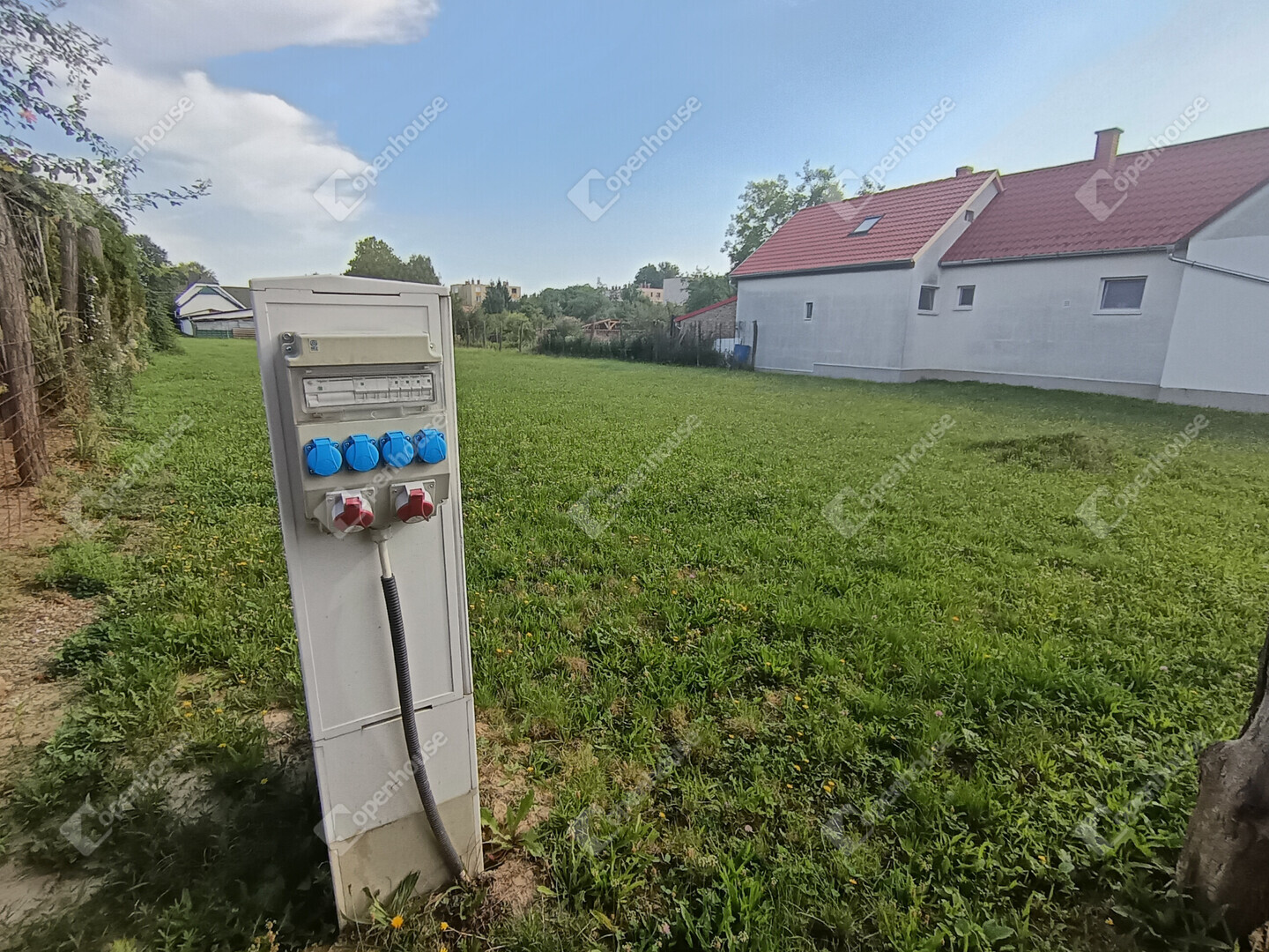 A villanyóra földkábeles, 3 x 32 Amperes, H tarifával kibővített, így akár napelemrendszer kialakítására is alkalmas.