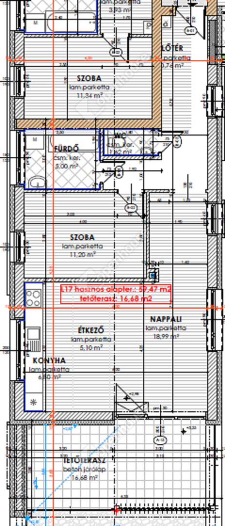 | Nappali | 18.99 m2 | Laminált padló |