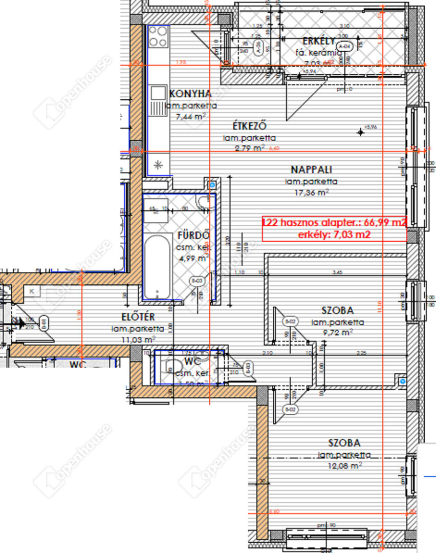 - nettó 66,99 m2-es lakás + 7,03 m2-es fedett erkély