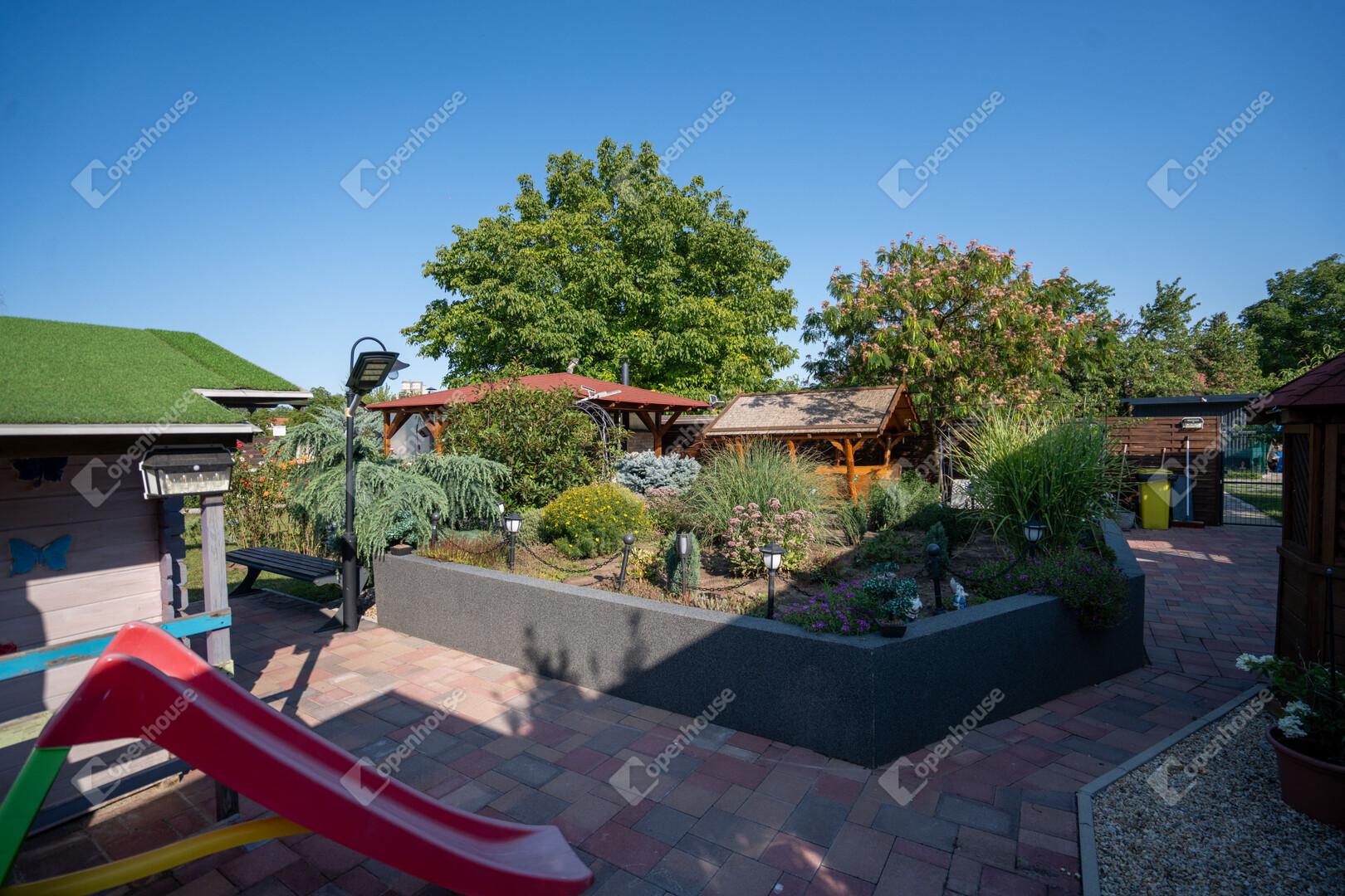 - A 850 nm telket nagyszerű koncepció mentén tagolták a tulajdonosok, így egy rendezett, szép kert öleli át az ingatlant, valamint egy hangulatos nyári konyha/sütögető filagória került kialakításra