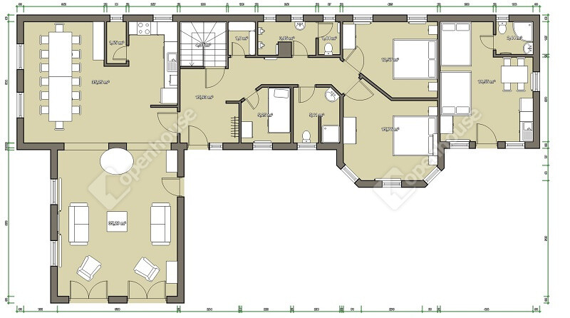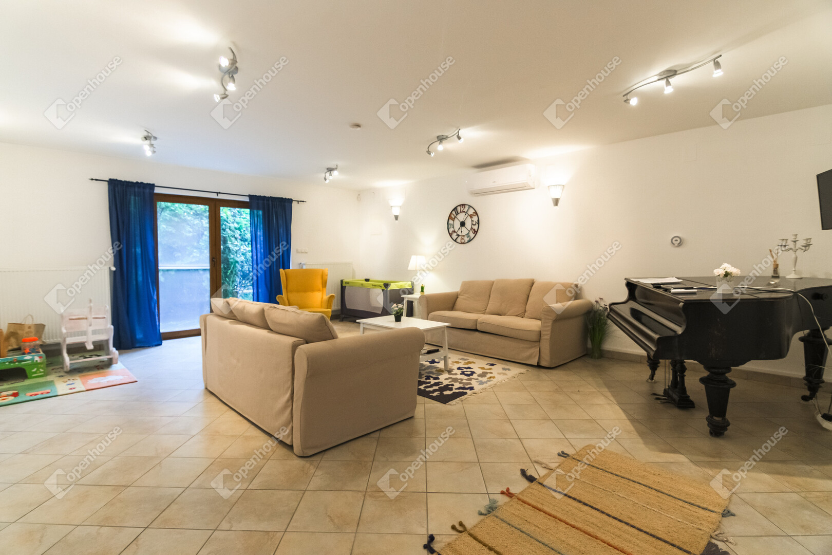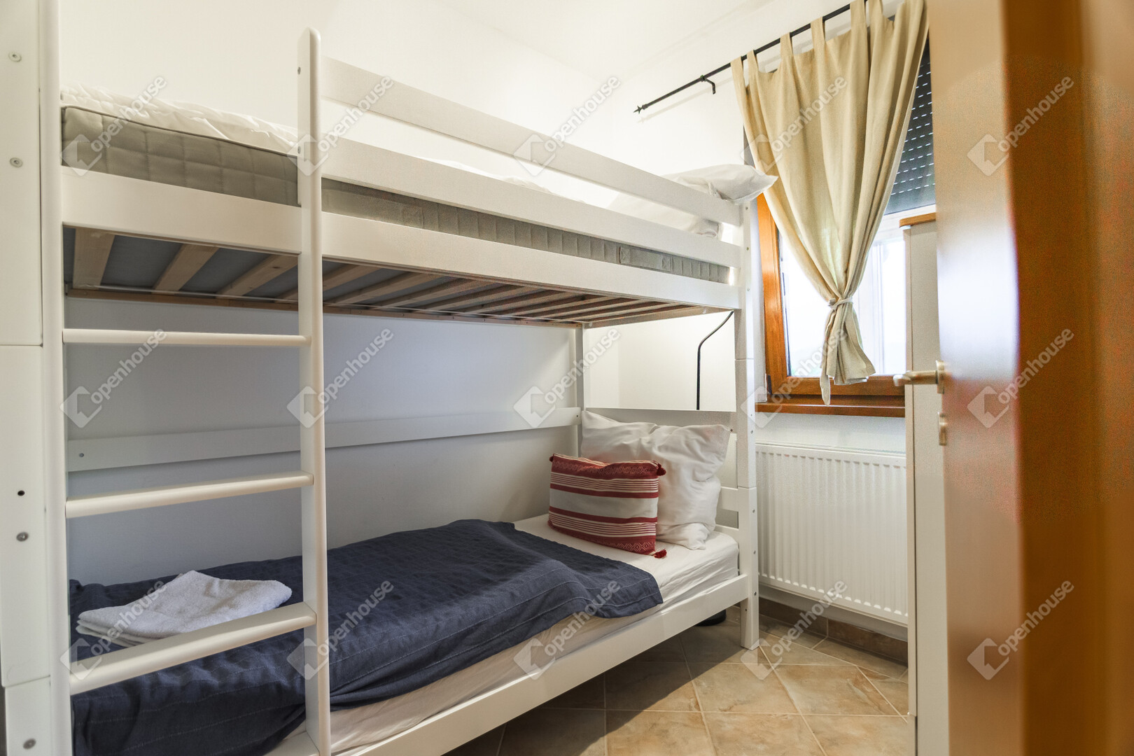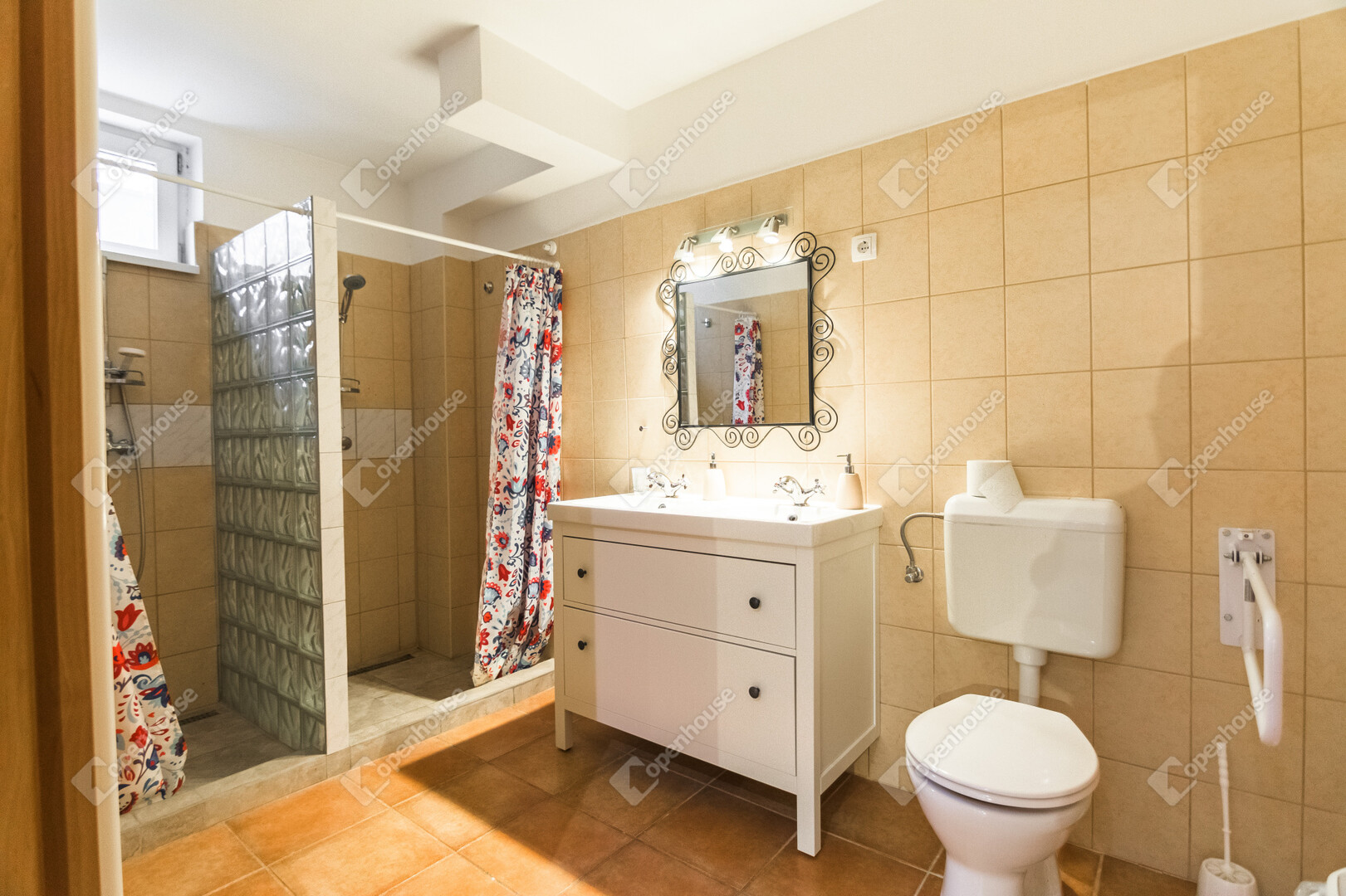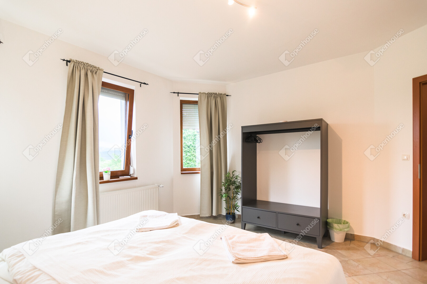Földszint: nagy konyha-étkező, kandallós nappali, 4 hálószoba (ebből 1 privát lakosztály saját fürdővel), 2 akadálymentes fürdőszoba, gardrób.