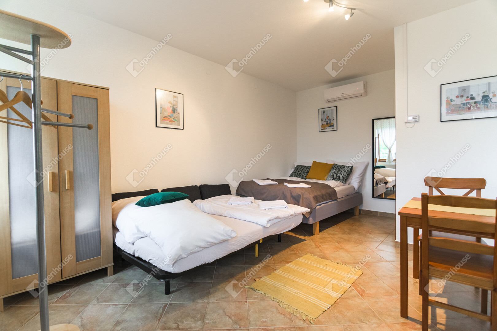 Kényelem: gázkazános fűtés, 5 klíma, fedett terasz, kert, bográcsozóhely.