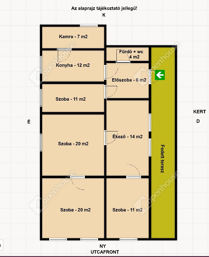 | Szoba | 20.00 m2 | Padlószőnyeg |