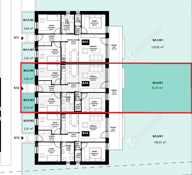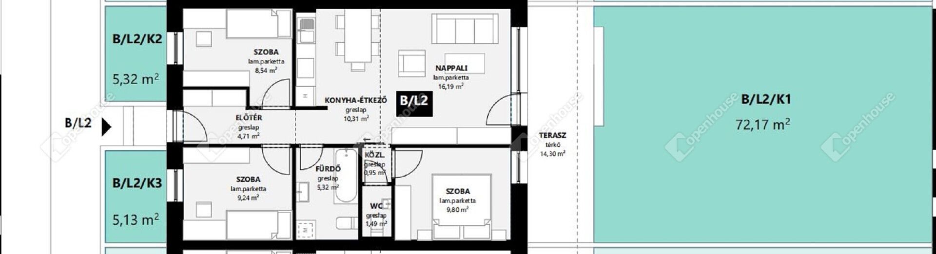 Eladó egy modern, amerikai konyhás nappalival + 3 hálószobával rendelkező sorházi lakás, fürdővel, külön mosdóval és 72.17 m²-es kertkapcsolattal. (+14,30 m² terasz)