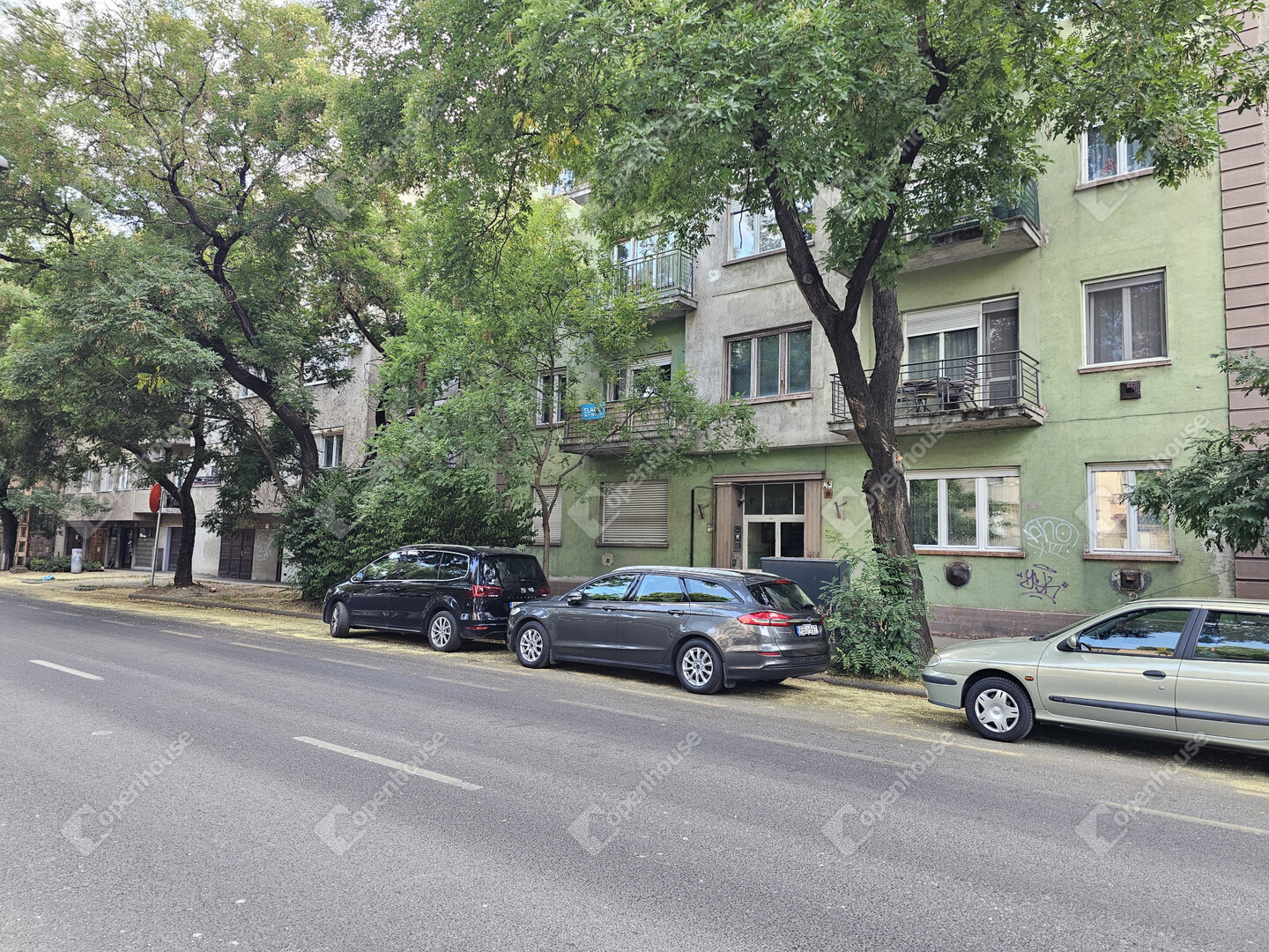 Erkély – Utcára,zöldre néző