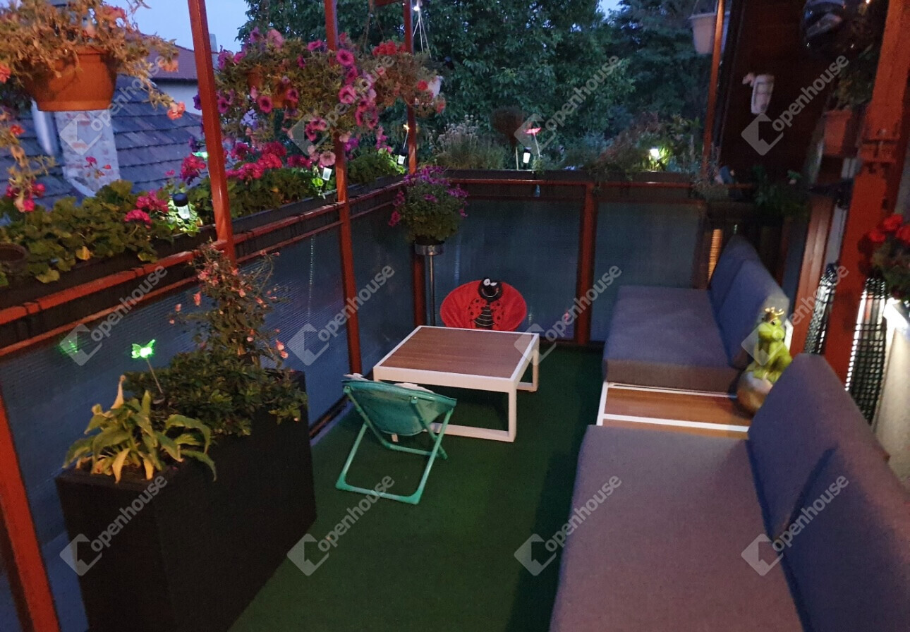 A tetőtérbe egy külső lépcsőfeljárón lehet feljutni mely egy 12nm-es privát teraszra visz fel, melyen a reggeli kávézás, vagy az esti borozgatás kifejezetten jóleső érzést tud nyújtani. Innen nyílik a felső szint bejárata.