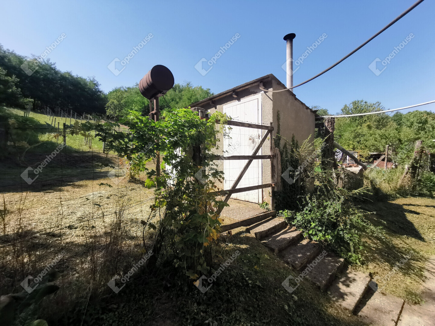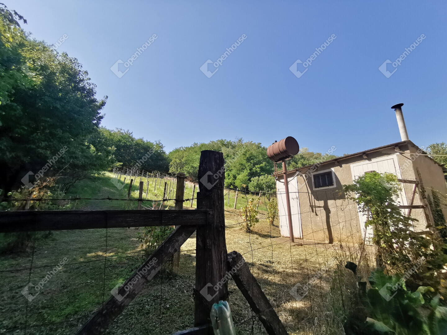 Összesen 4010 m² terület: lankás szőlőskert, fás terület, két különálló épület, garázs és tárolók.