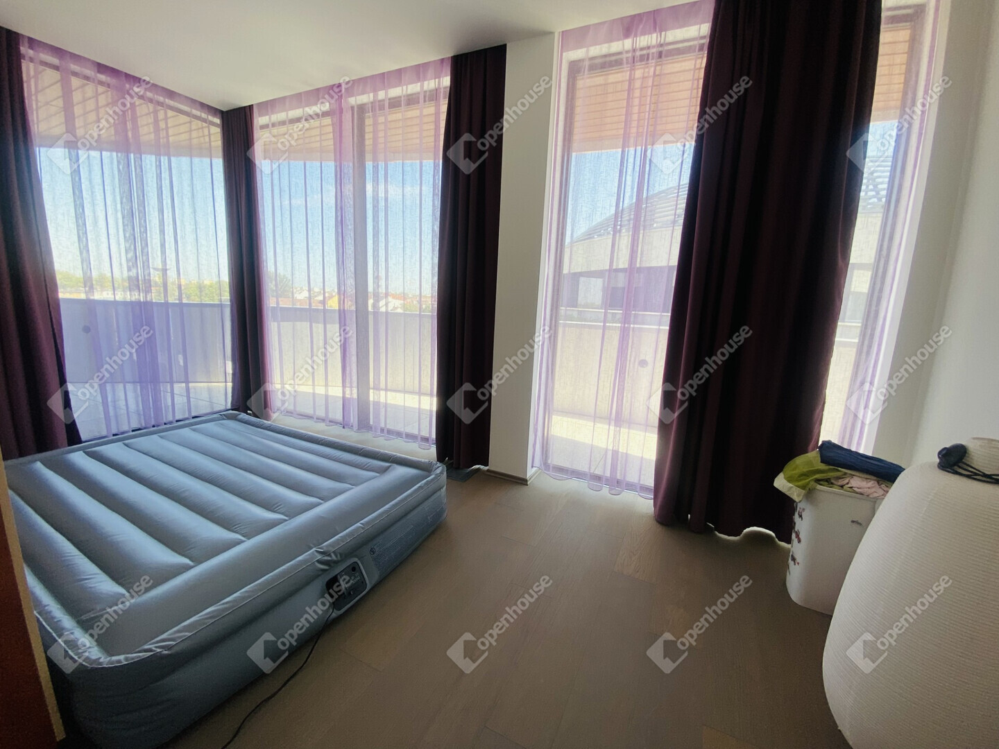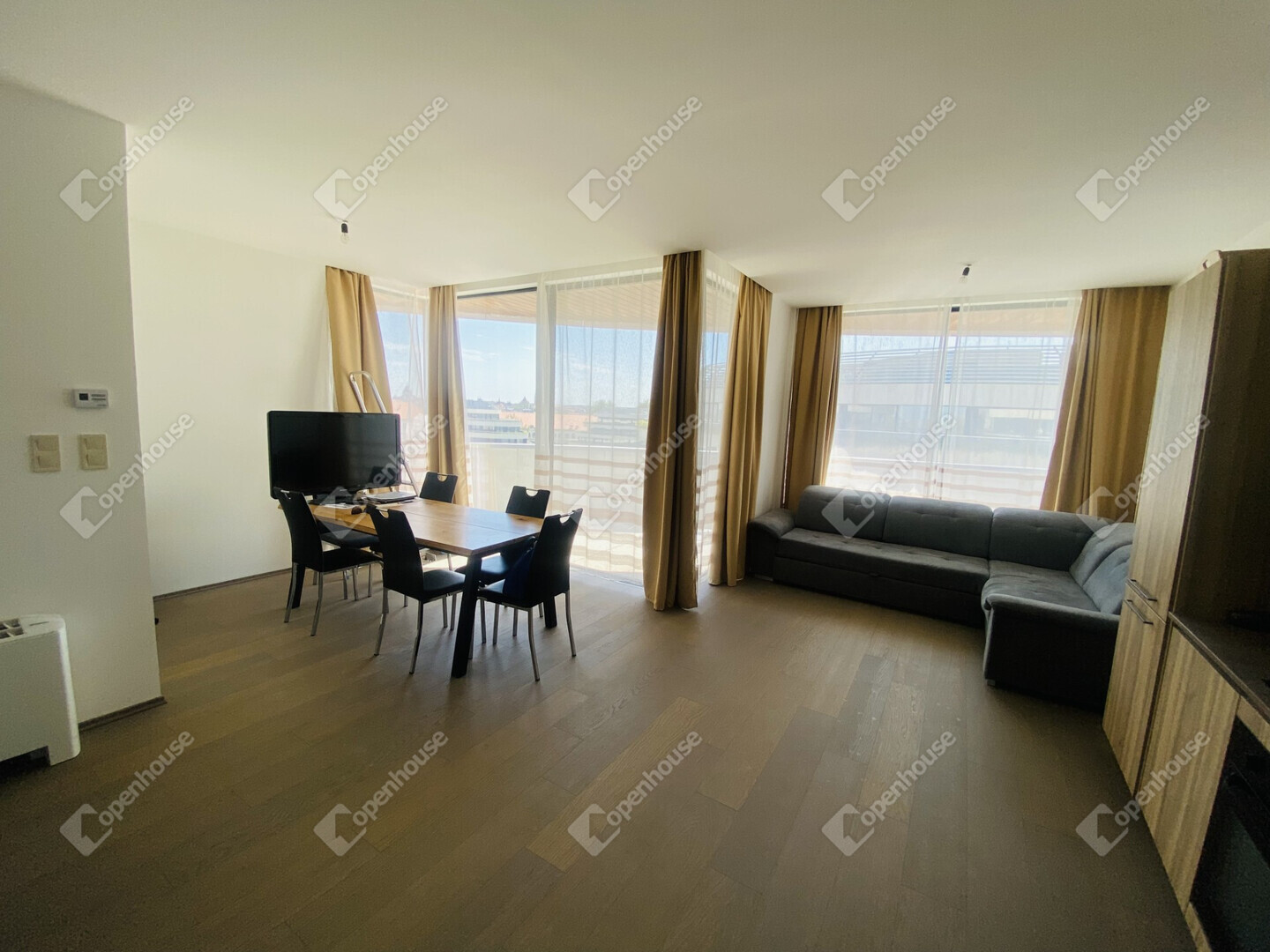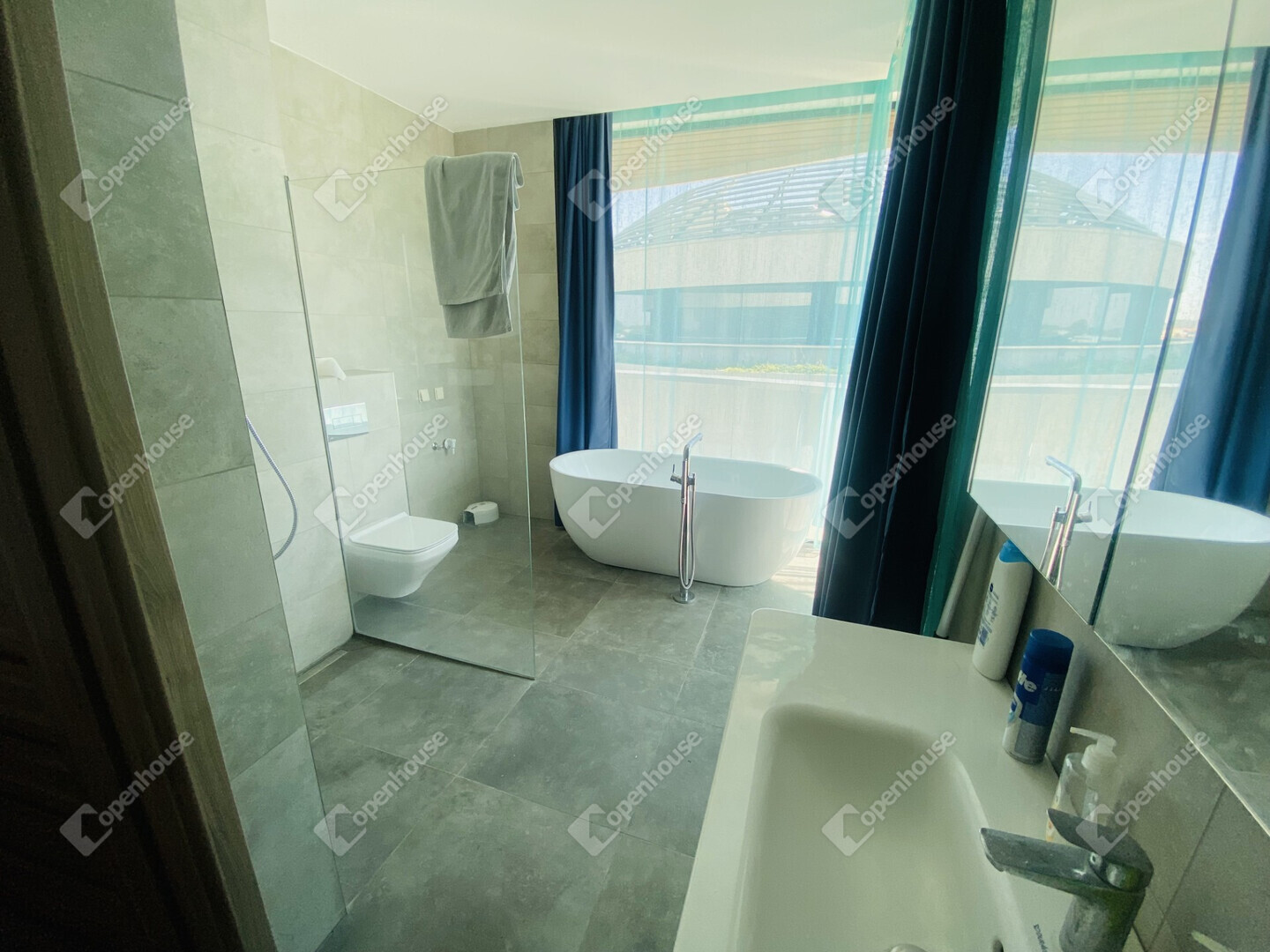 Eladó egy 106 m²-es, exkluzív 5. emeleti lakás, hatalmas 52,5 m² terasszal, ahonnan lélegzetelállító panoráma nyílik a városra és a lakópark saját tavára.