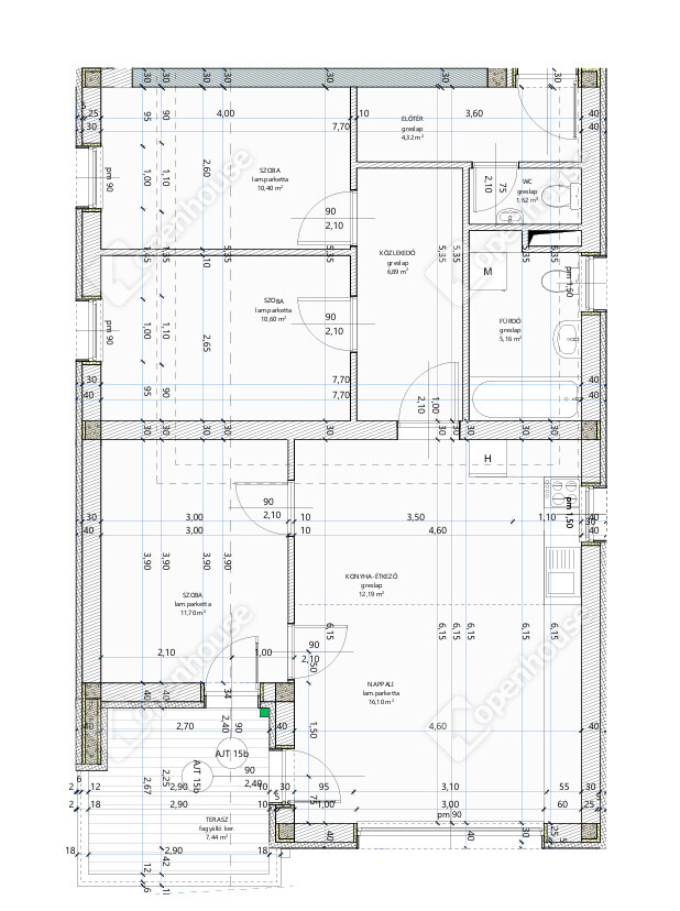 | Terasz | 7.44 m2 | Járólap |