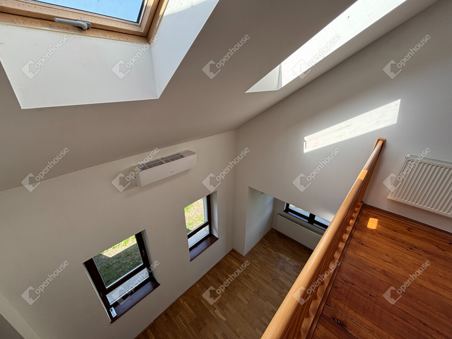 A ház elosztása átgondolt: a földszinten tágas nappali-étkező, konyha, fürdőszoba és két hálószoba található, míg az emeleten további három szoba, egy második fürdő és egy hangulatos galériás tér kapott helyet. A 19 m²-es terasz szinte a nappali természetes meghosszabbítása, ahol reggeli kávé vagy esti vacsora egyaránt élménnyé válik.