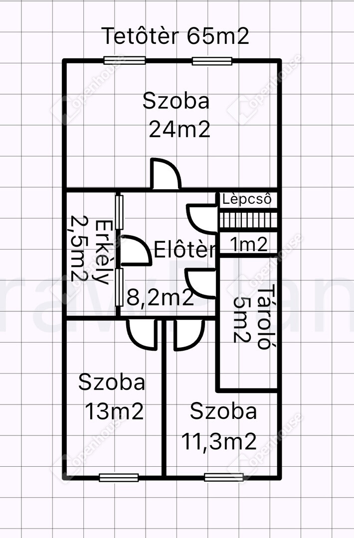 | Lépcsőház | 5.00 m2 | Burkolat nélküli |