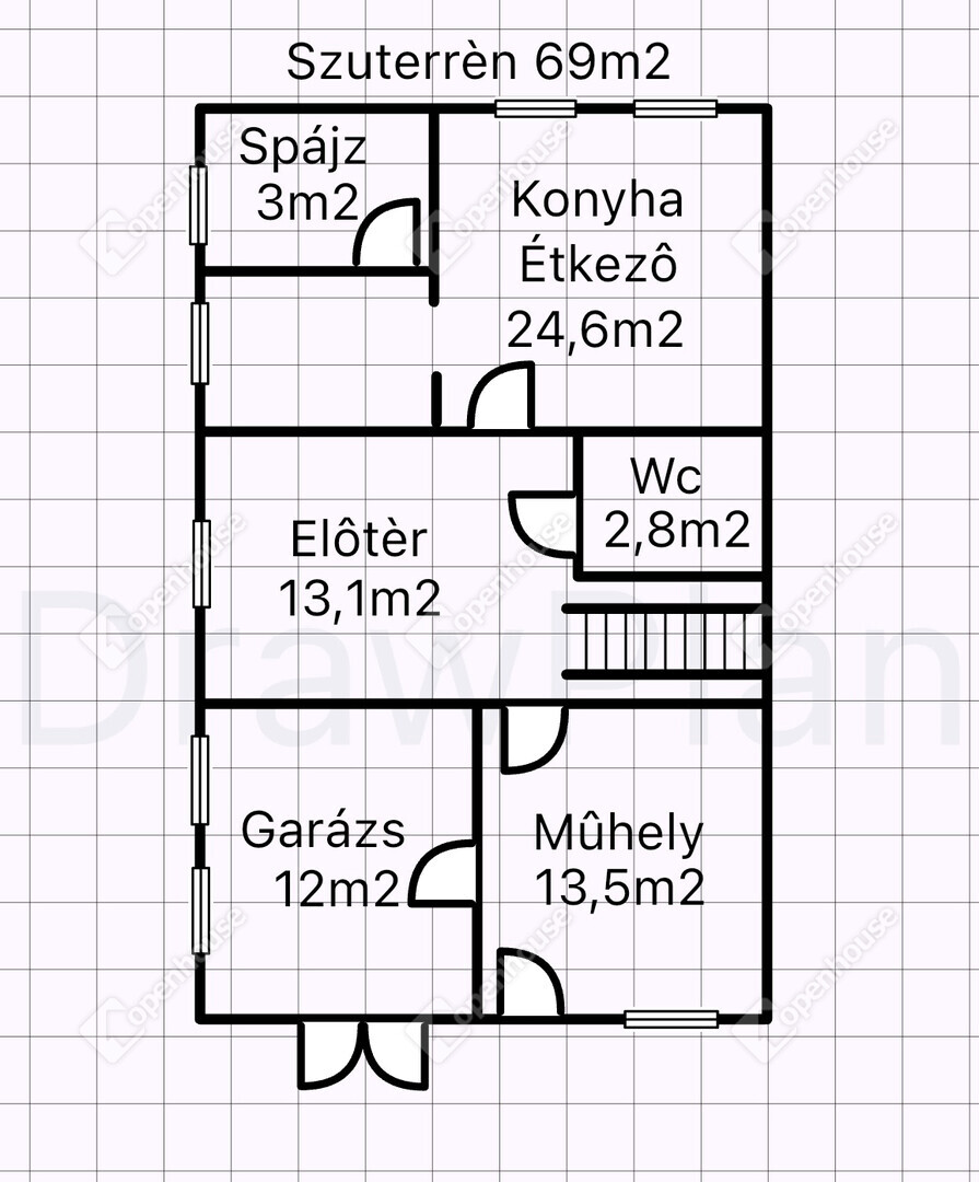 | Műhely | 13.50 m2 | Burkolat nélküli |