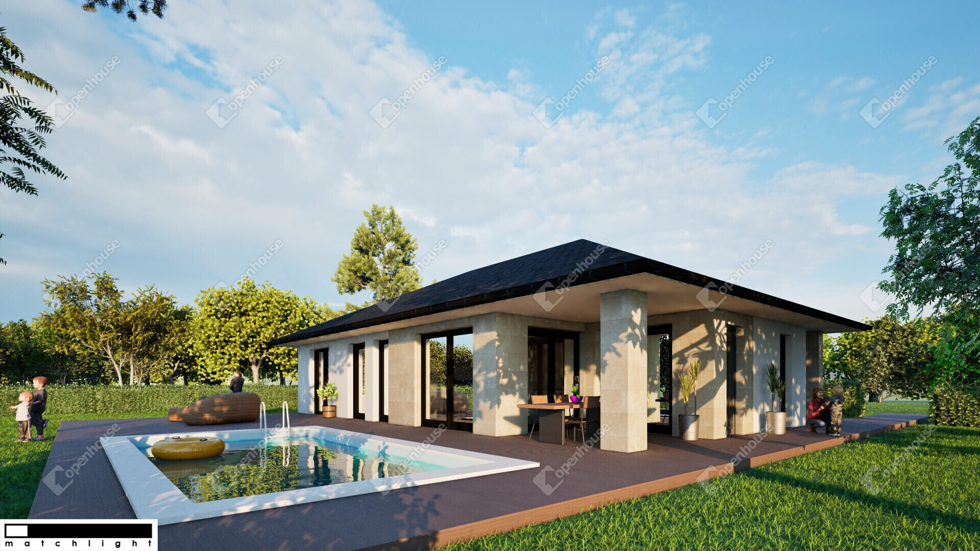 Az ingatlanról: Az ingatlan minőségi alapanyagok felhasználásával és a modern technológia alkalmazásával készül, a lehető legmagasabb színvonalon, minimás stílusban. A nettó alapterület 102m2, ami magába foglal egy hatalmas amerikai konyhás nappalit, 3 hálószobát, 2 fürdőszobát WC-vel, egy vendék WC-t és egy háztartási helyiséget. Továbbá az ingatlanhoz tartozik 2 db térkövezett kocsibeálló, egy nagy méretű 20m2-es épített terasz, melyből 10m2 fedett, továbbá az ingatlanhoz tartozik egy saját használatú 915m2-es kertrész is. Az ingatlanok a látványtervel megegyezően leszknek kialakítva, a medence opcionális tételként, felár ellenében érhető el.