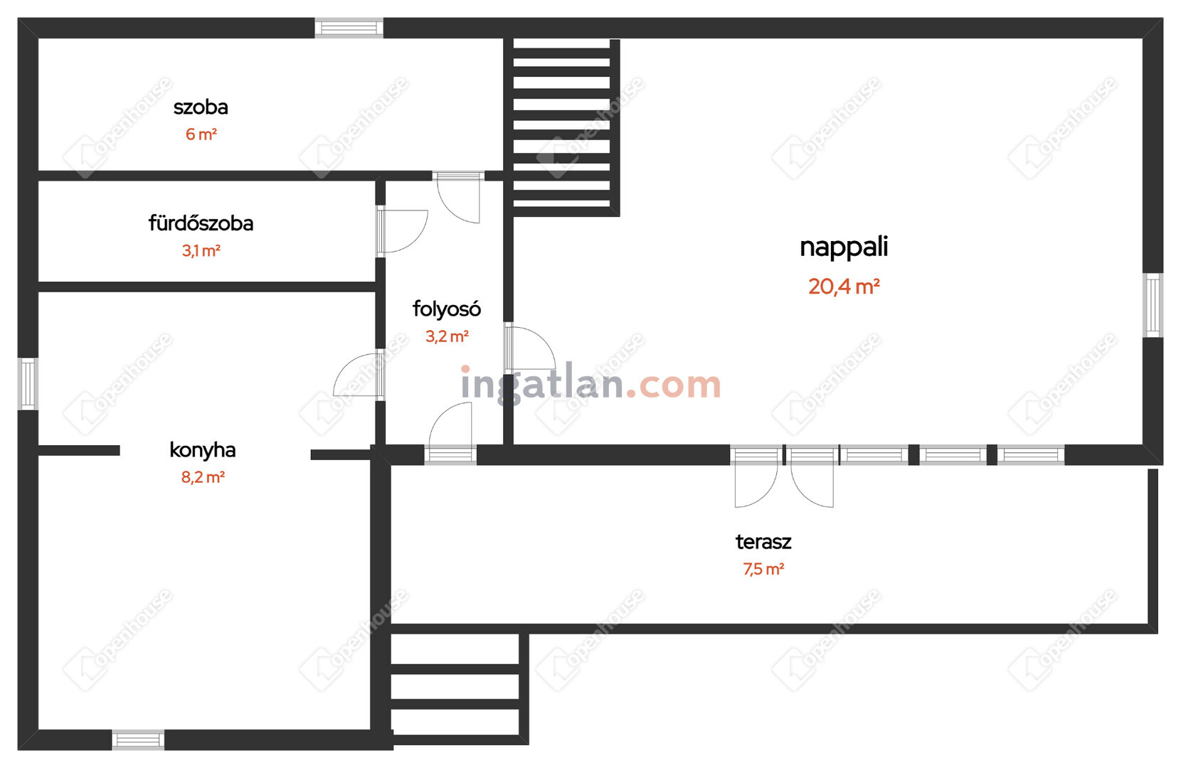 | Előszoba | 3.00 m2 | Kőburkolat |