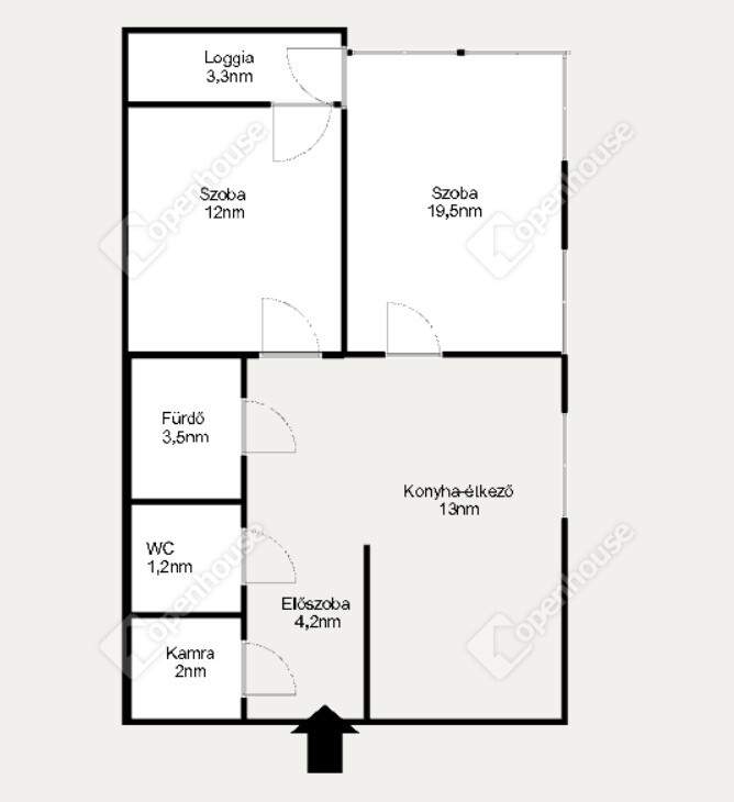 A lakás praktikus elrendezésű, kényelmes terekkel, világos nappalival és külön konyhával.