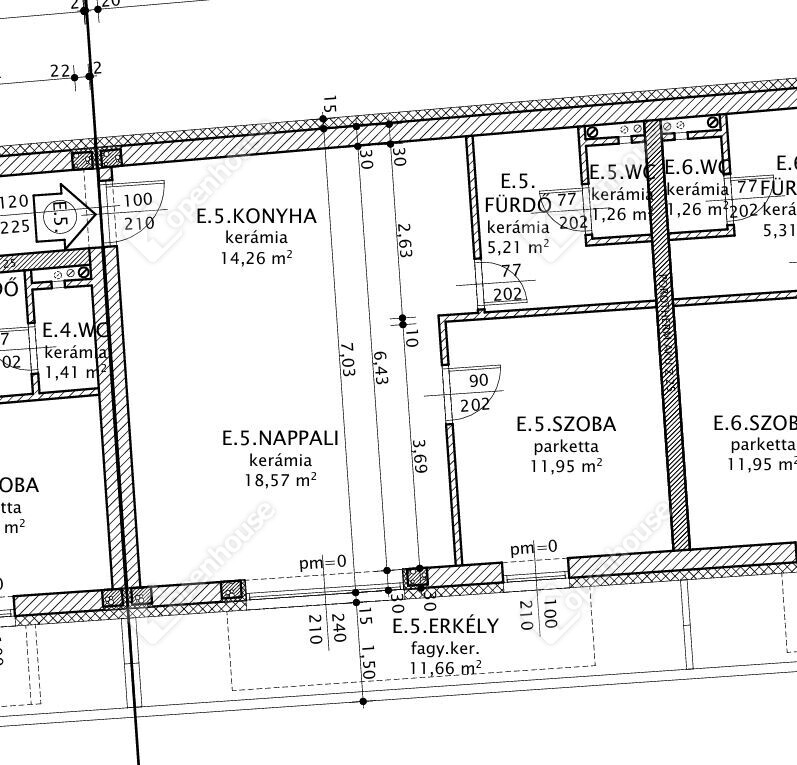 - IE5 lakás 51,25 m2 + 11,66 m2 erkély