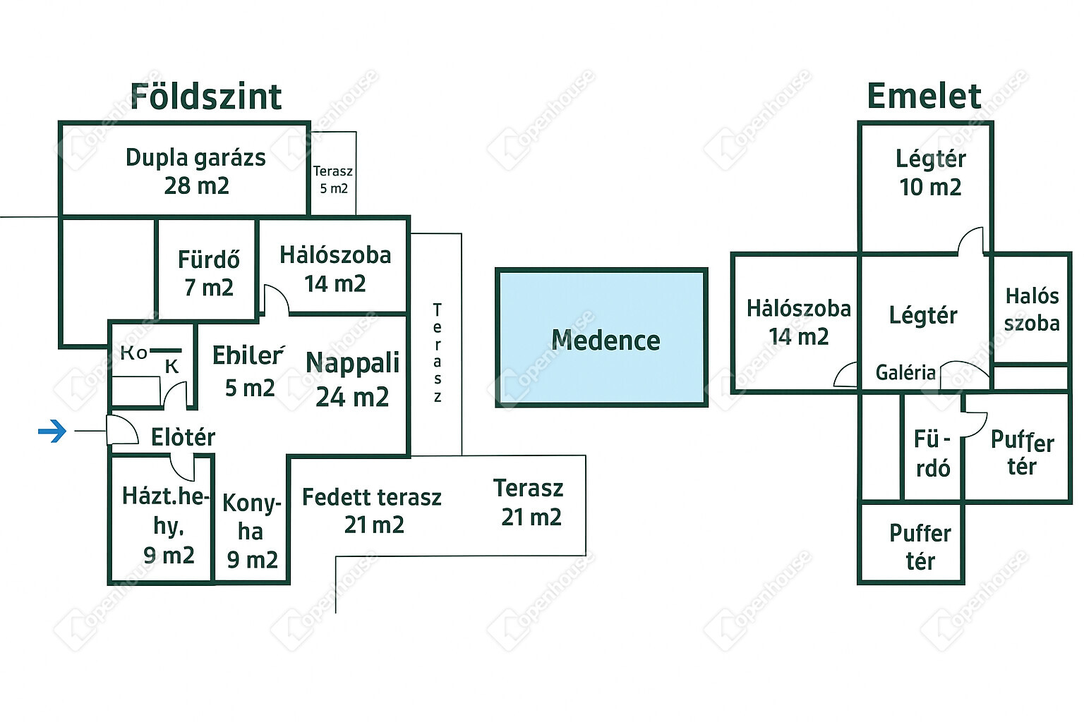 - klíma a fölszinten és az emeleten is