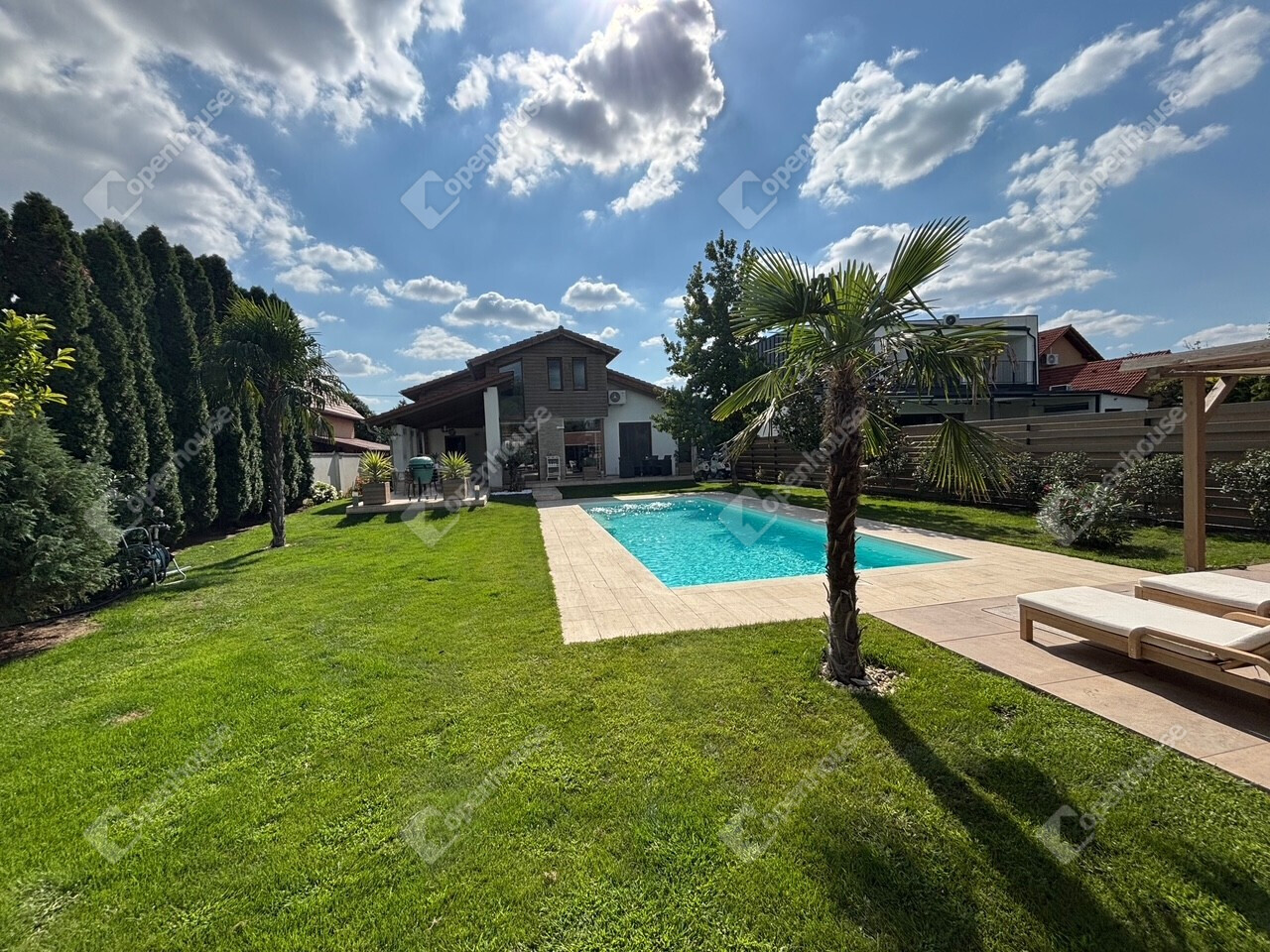 - Amerikaikonyhás nappali + 5 hálószoba + 3 fürdő + 2 WC
