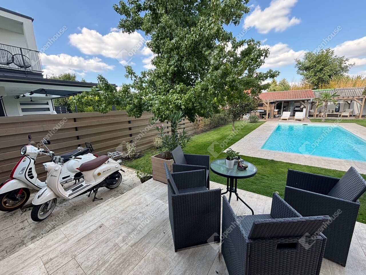 - Parkosított kert, automata öntözőrendszer, grillező