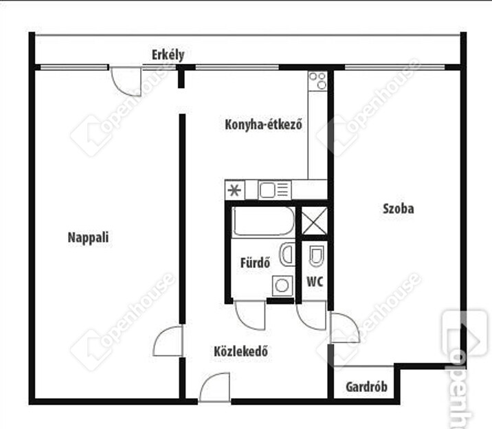 A lakás érdekessége a nagyméretű erkély, melynek köszönhetően kellemes és világos érzetet biztosít.