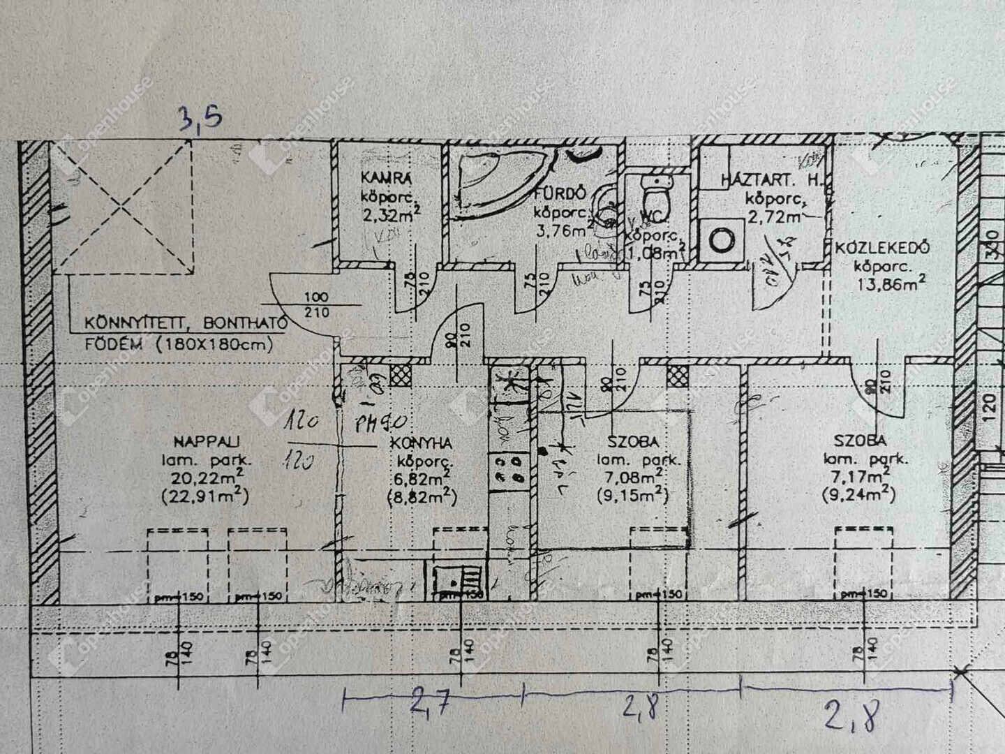 Jó elosztás, amely kis átalakítással nappali + 3 szobává alakítható