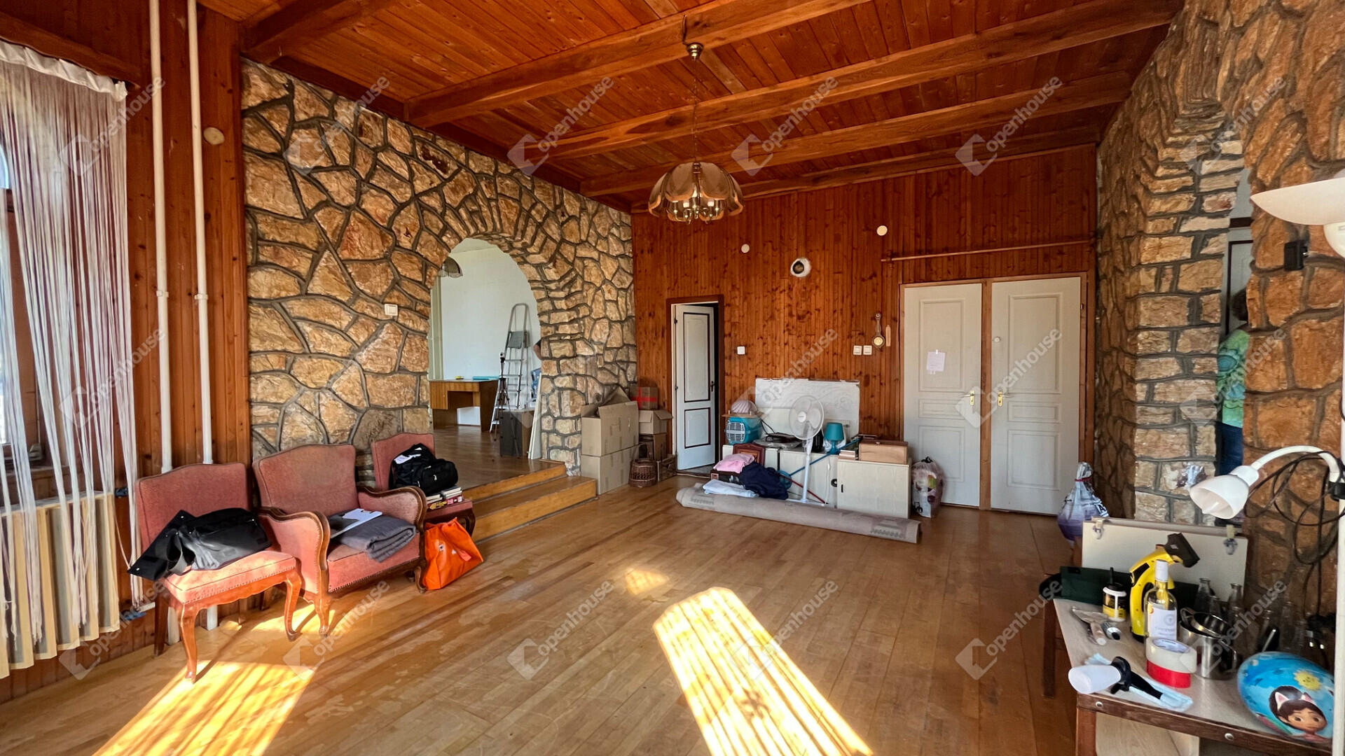 - nagy belmagasságú, fagerendás nappali, íves falakkal