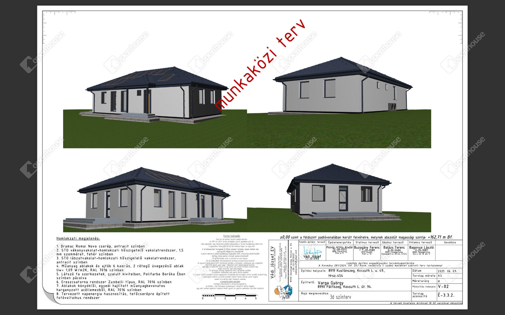 Építési mód: szabadon álló vagy oldalhatáron álló.