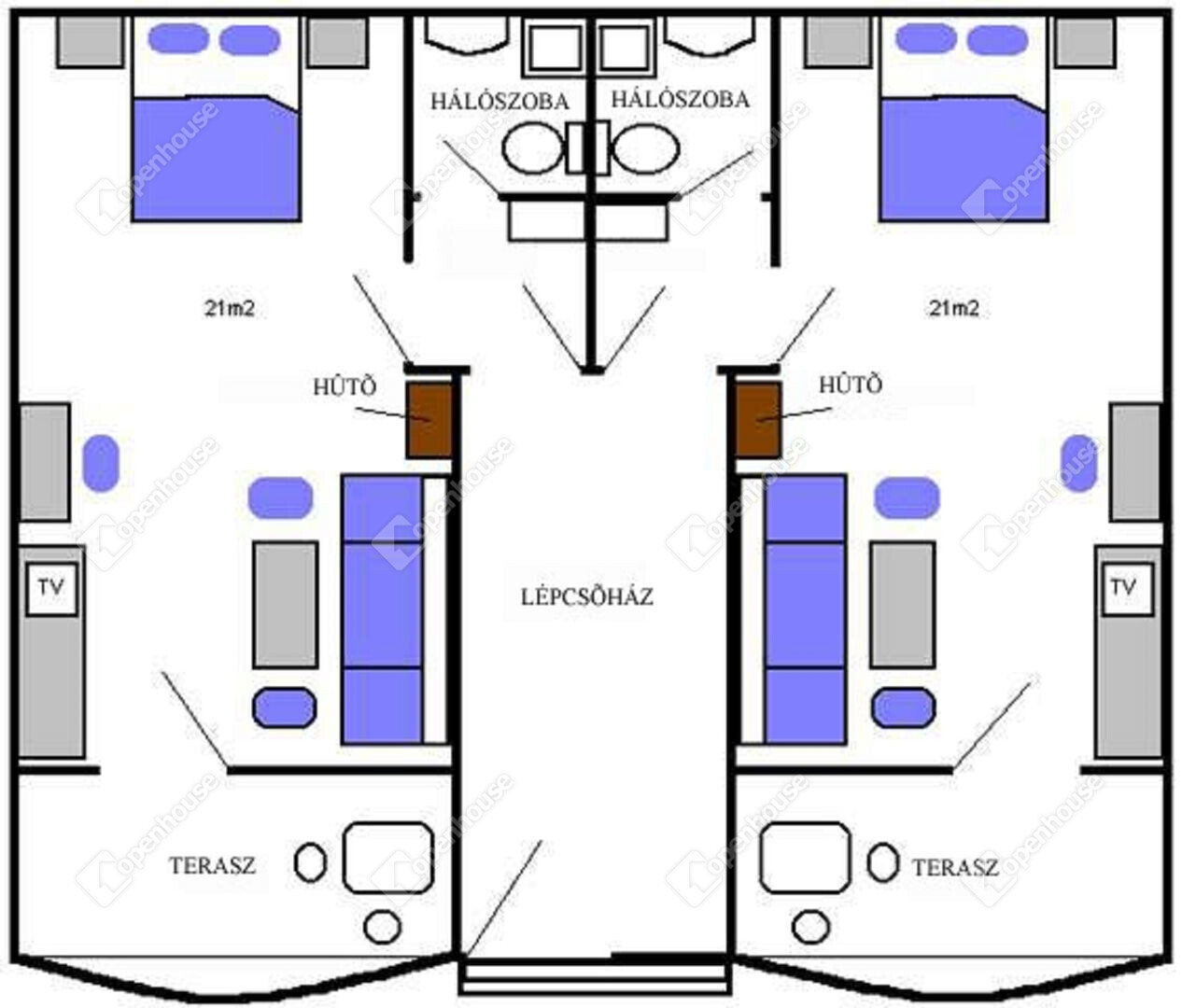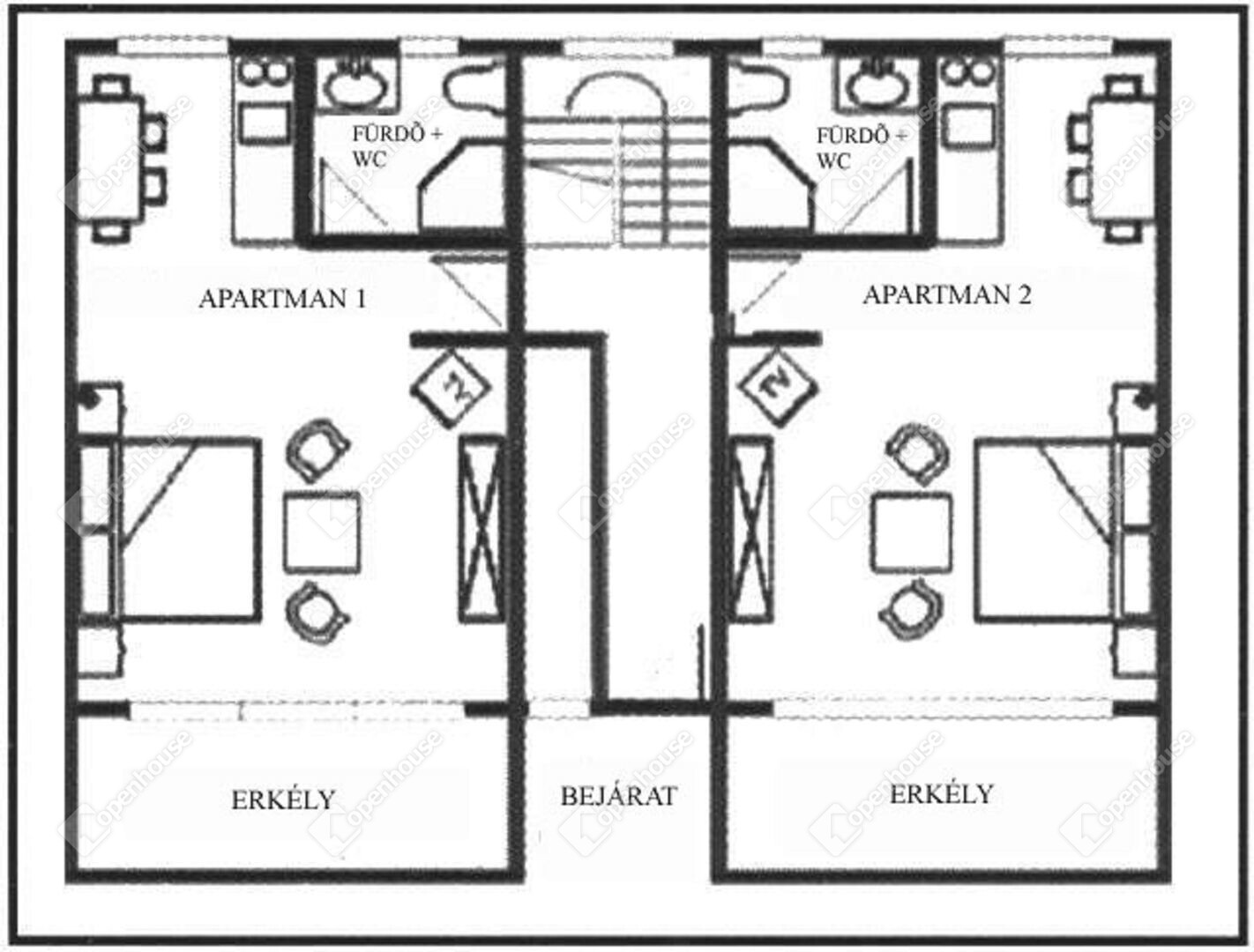 közvetlen szomszédságban: 4 családi apartman, klimatizálva, terasszal
