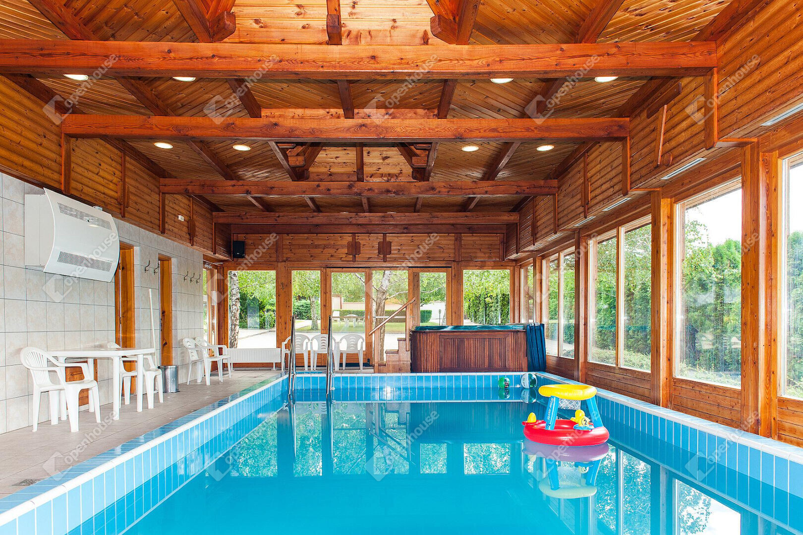 fűtött, fedett medence (4×9 m), pezsgőfürdő, szauna, zuhanyzók