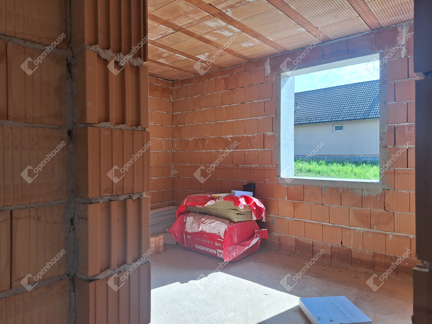 A teraszról egy impozáns lépcső vezet az emeletre, ahol 1-2 hálószoba, fürdő, WC, háztartási helyiség, valamint egy tágas közösségi tér alakítható ki. A kivitelezés során elkészül a belső vakolás, estrich beton, a tetőszerkezet hőszigetelése és lambériázása.
