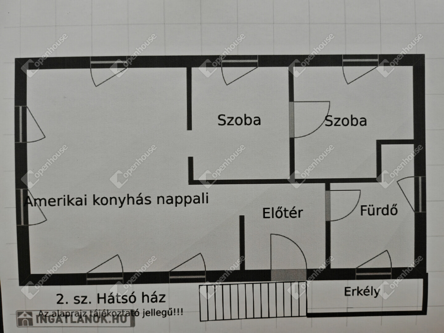 2. lakóingatlan: A hátsó tégla építésű ház 81 m2 alapterületű, melynek földszinti részén egy pazar, vállalkozásra is alkalmas