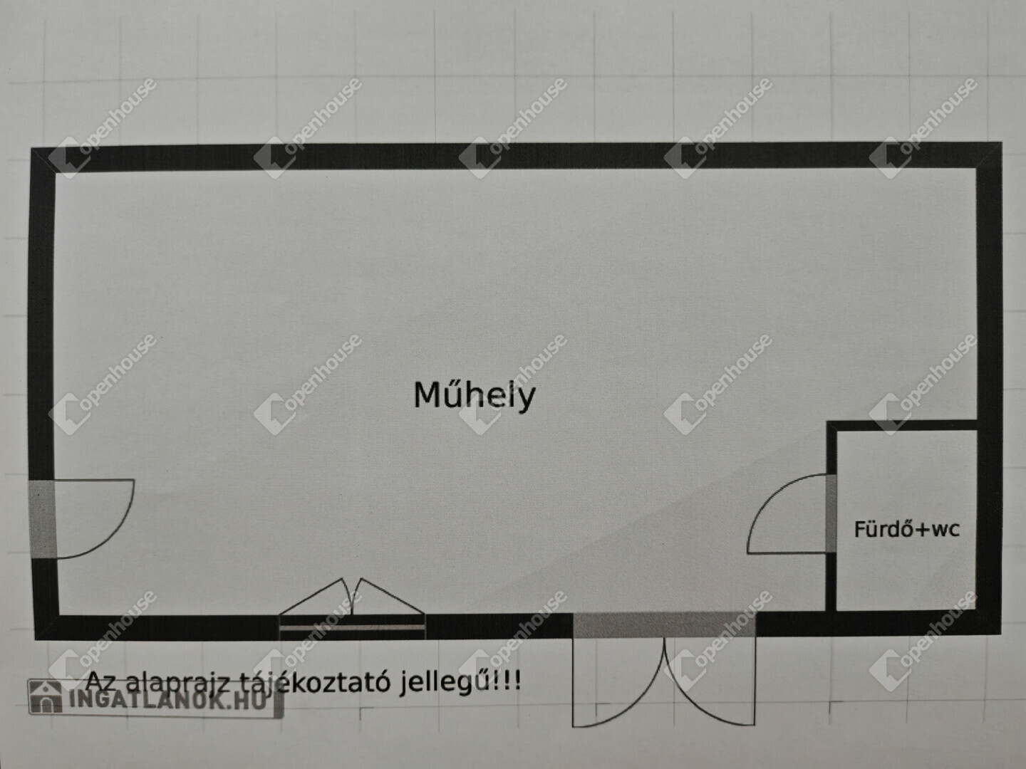 műhely található ipari árammal, fürdő helységgel wc-vel. Felhasználására, csak a képzelet szab határt. Lehet műhely, garázs,