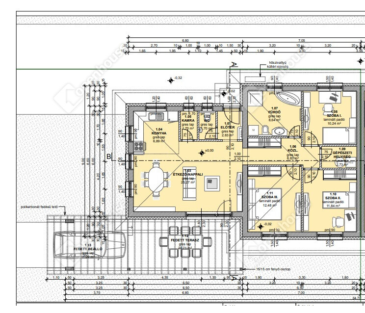 | Nappali | 25.27 m2 | Laminált padló |