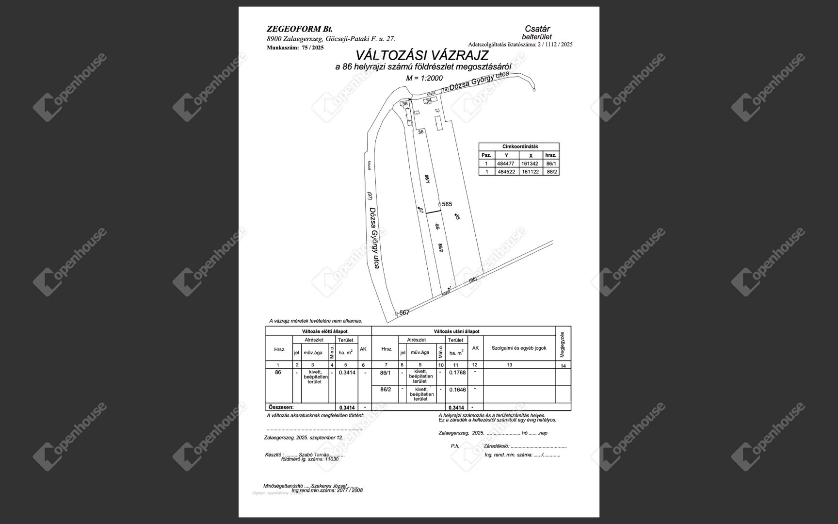 Az Openhouse Zalaegerszeg Ingatlaniroda kínálatában eladó a #177023 hivatkozási számú csatári telek.