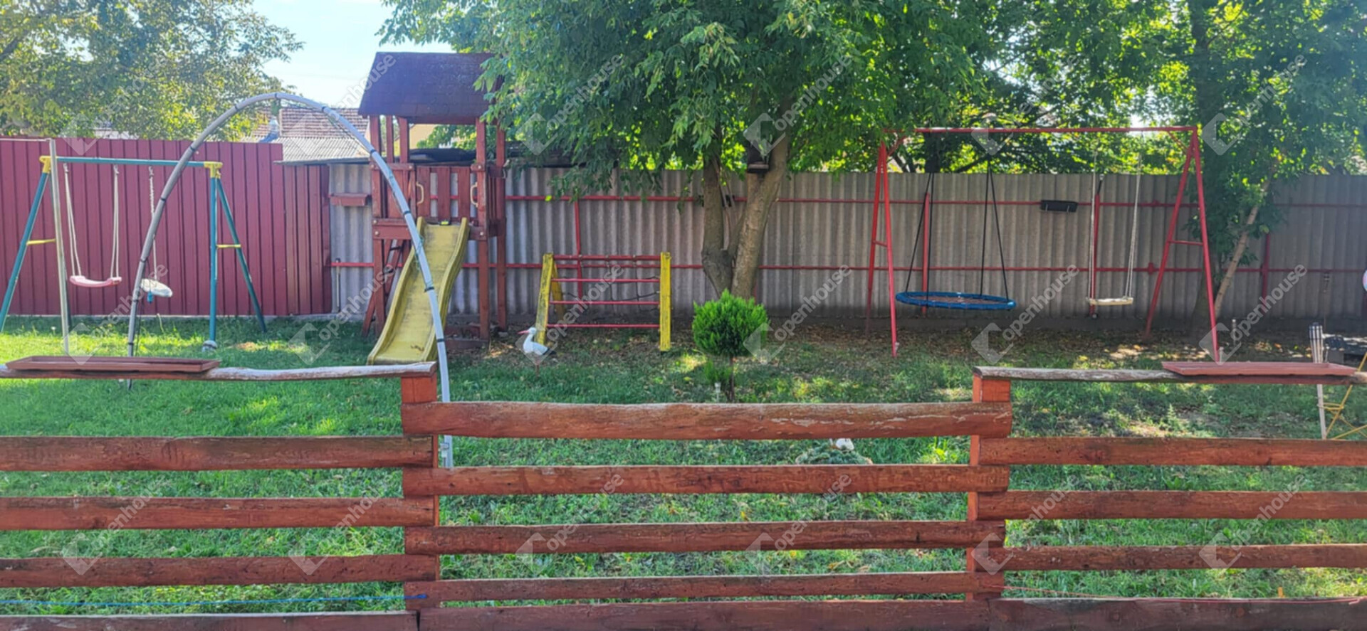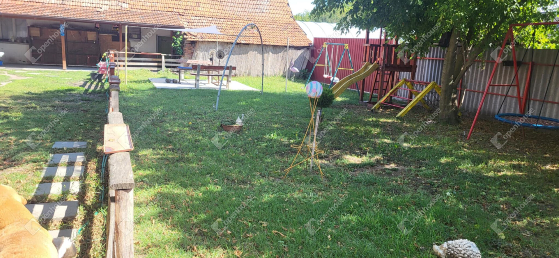 hátsó udvar, ahol gyerekek számára játszótér, hinta és különféle játékok állnak rendelkezésre, valamint egy kerti WC is kialakításra került