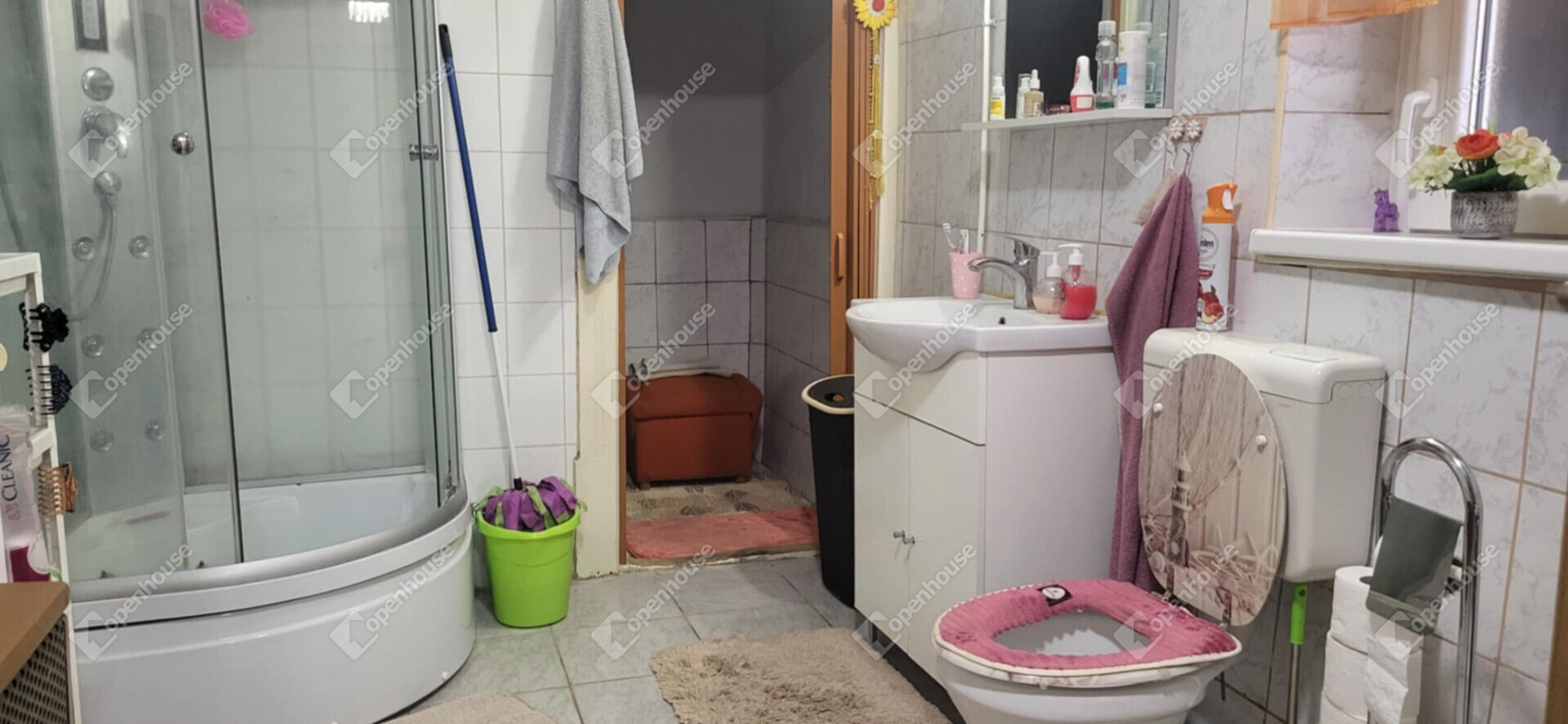 nagy méretű, zuhanykabinos fürdőszoba WC-vel
